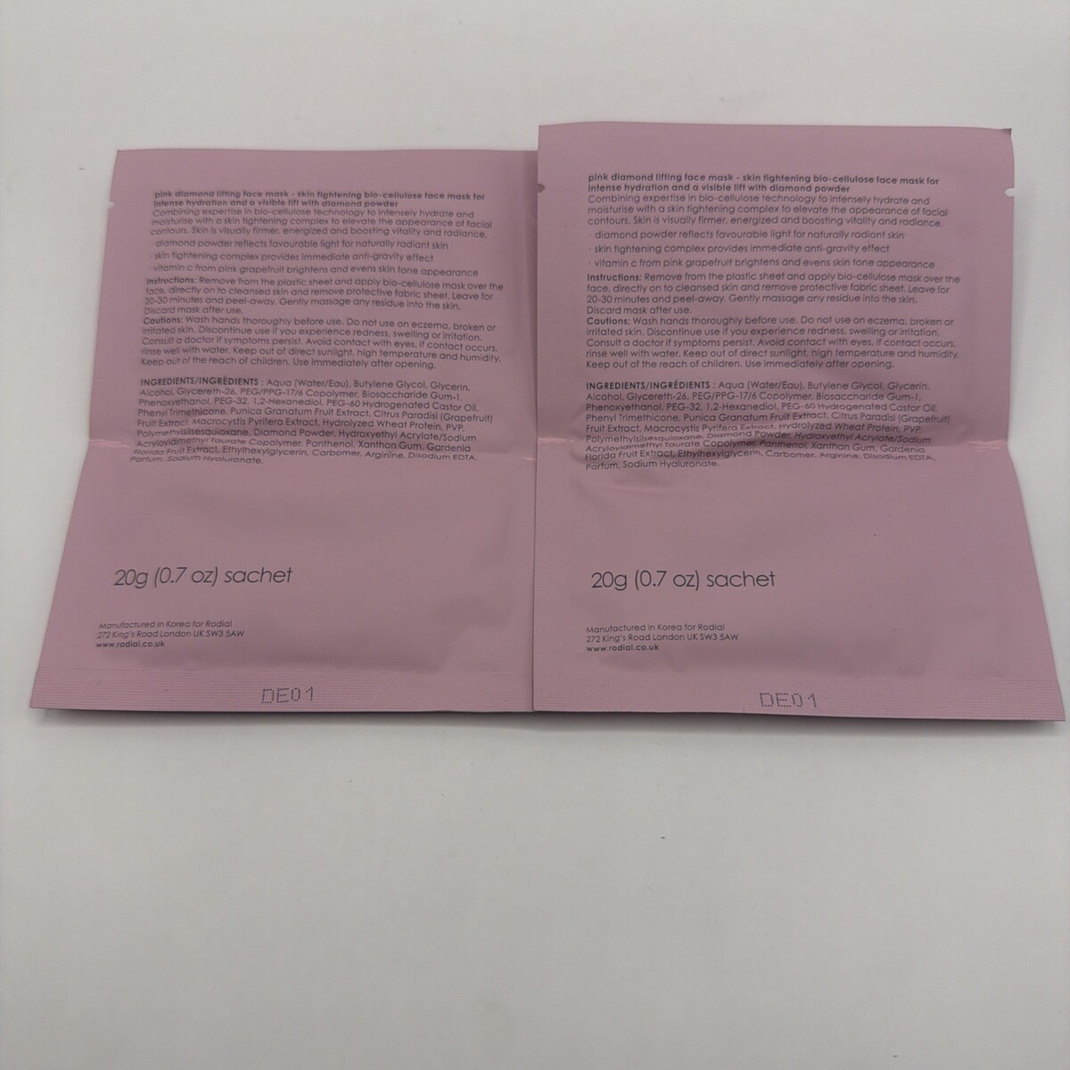Rodial LOT OF 2 Pink Diamond Lifting Face Mask 0.7oz As Pictured, No Box New