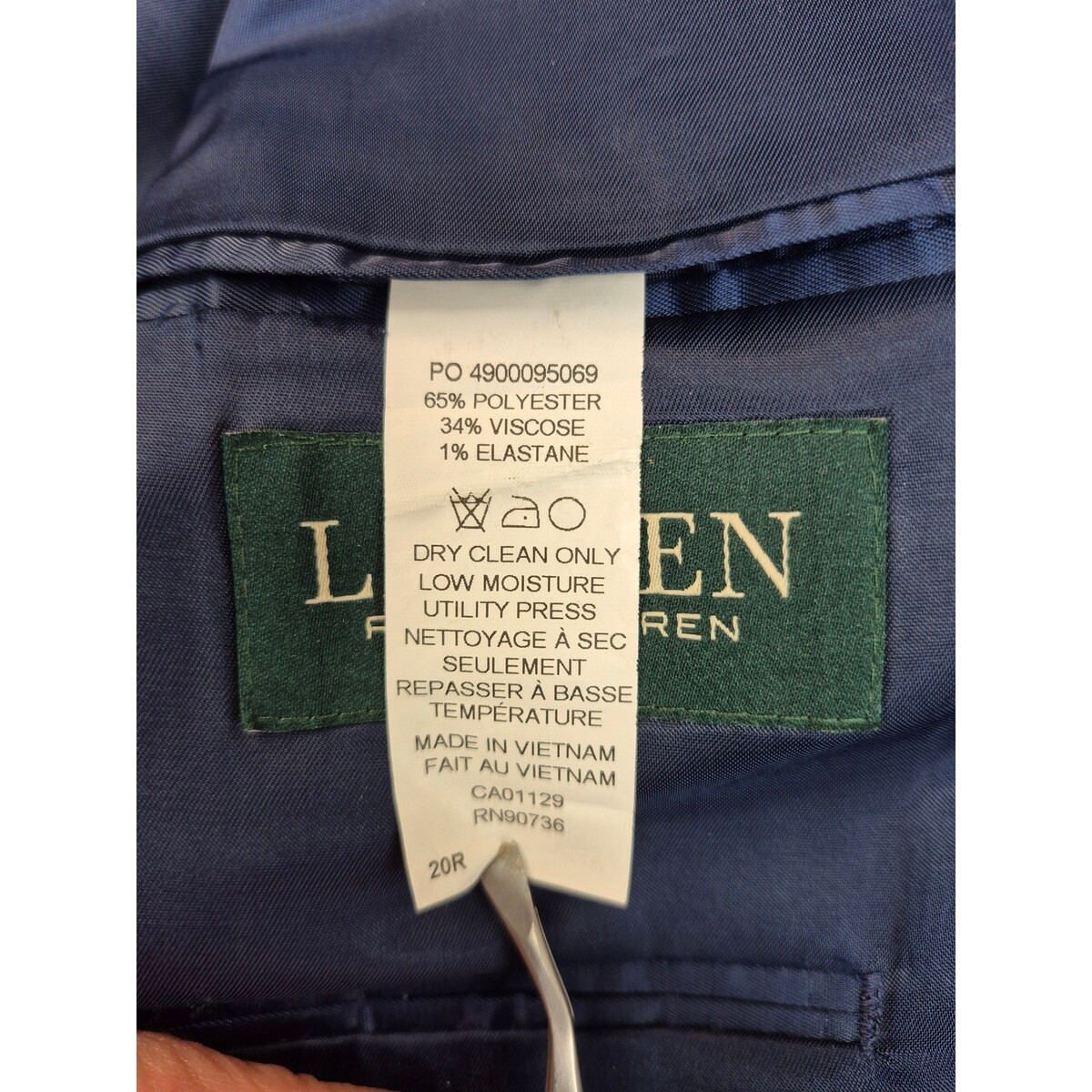 VTG Ralph Lauren Navy Blue Grid Pattern 2 Button Blazer Fully Lined Sz 40R
