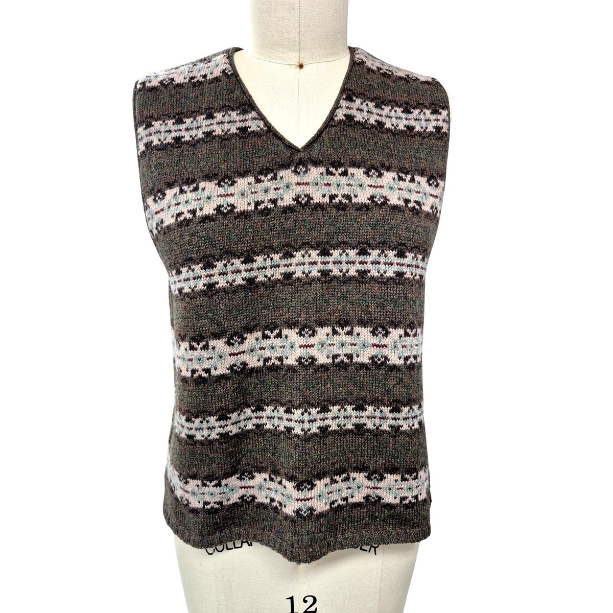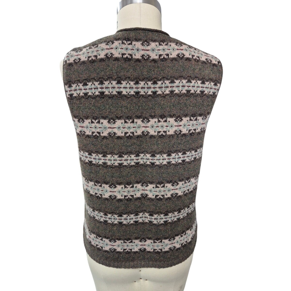 Vtg 80s 90s Eddie Bauer 100% Wool Sweater Vest Green/ Pink Fair Isle Women S/P