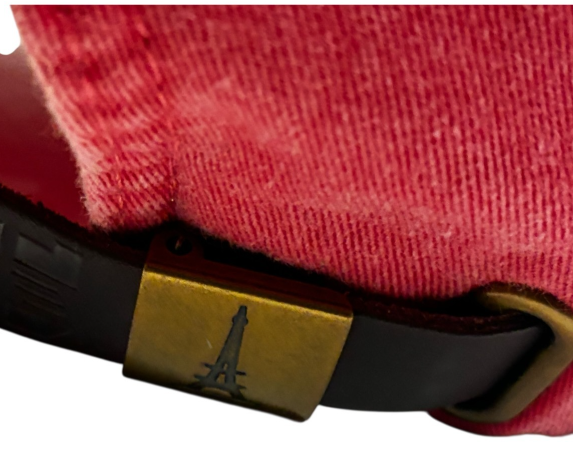 light red strapback Chilton Hat with Lubbock original Chilton receipe on the side
