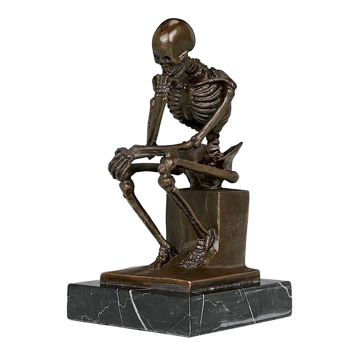 The Skeleton Thinker Real Bronze on Marble Base Statue Sculpture 9.65 in