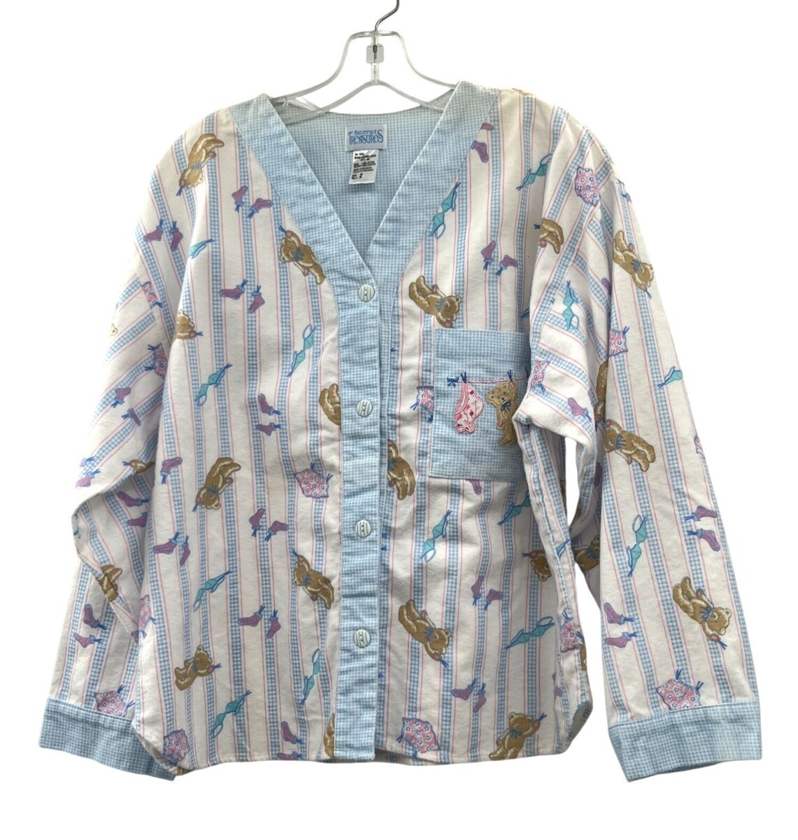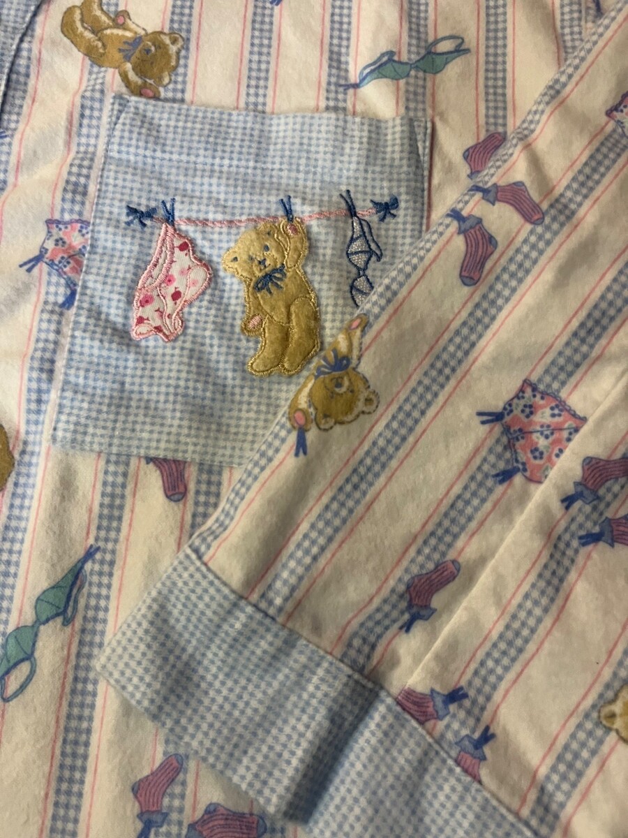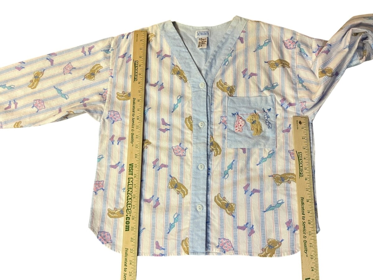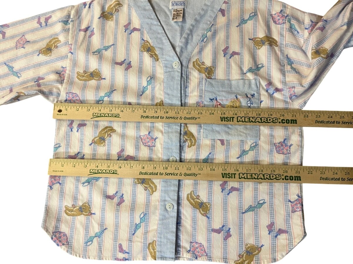 Secret Treasures, Richard Leeds, 1990s pajamas, vintage sleepwear, teddy bear print, flannel pajama set, womens medium, vintage loungewear, cute pajama top, retro nightwear, 90s sleep set, cottagecore pajamas, vintage cotton pjs, cozy flannel, made in Indonesia, vintage Secret Treasures 1996, pastel pajama set, kawaii sleepwear, nostalgic 90s fashion, Fall, Winter