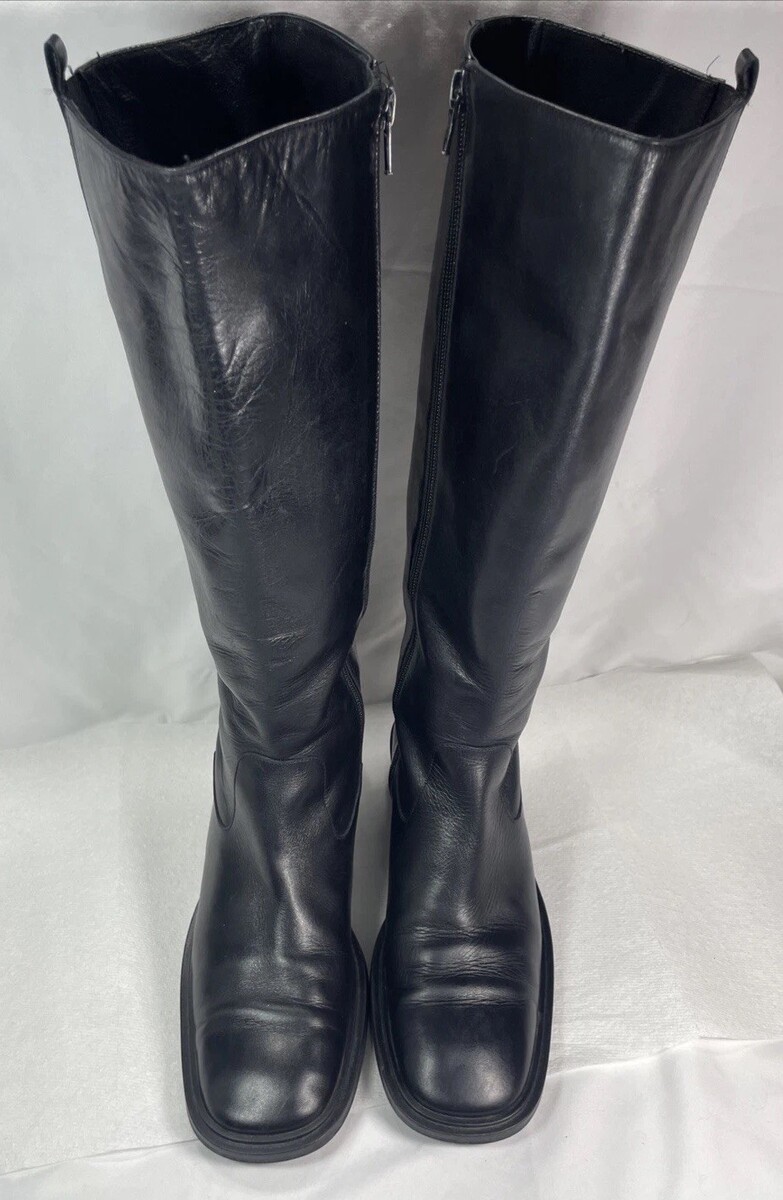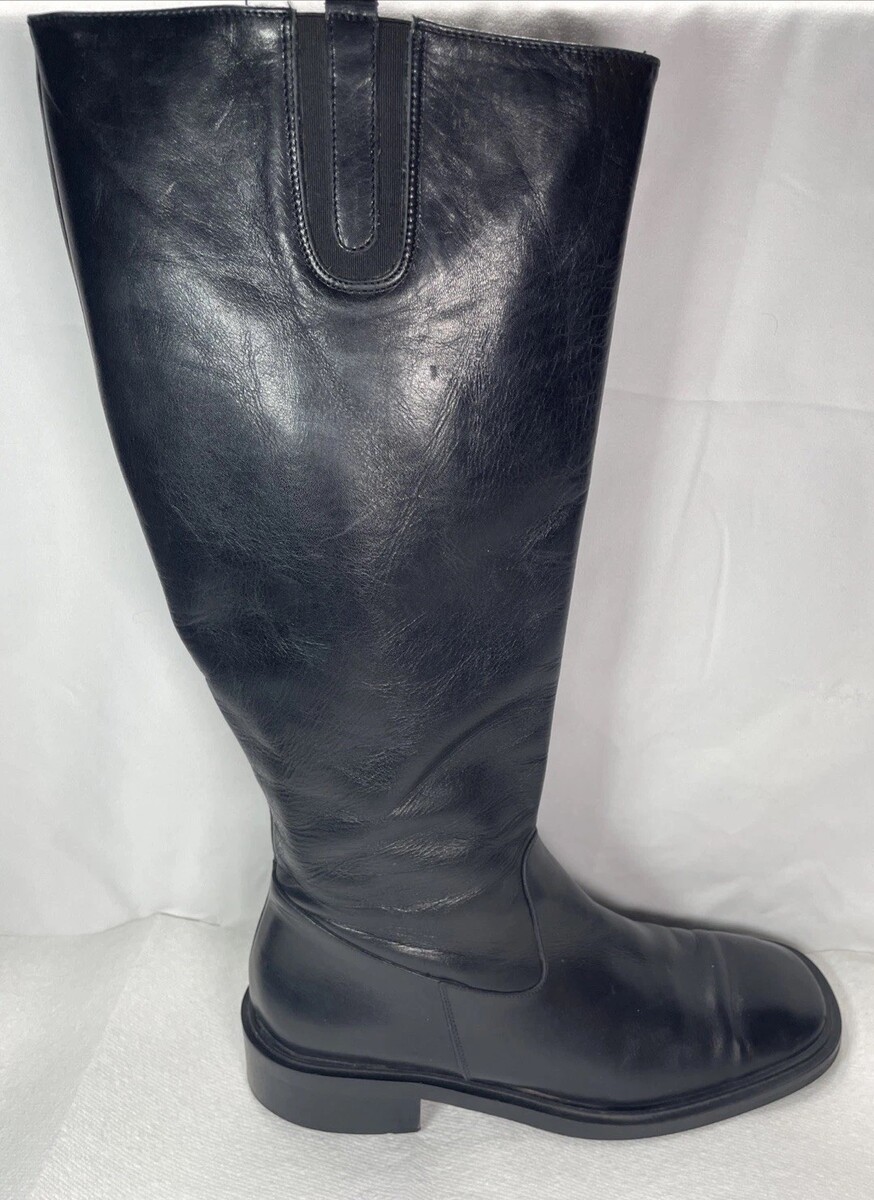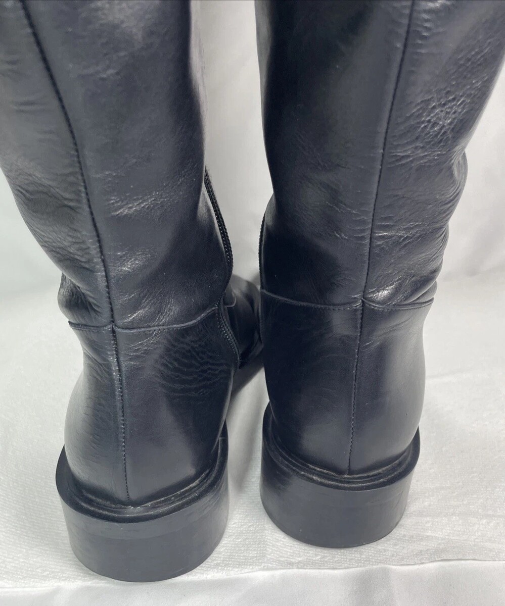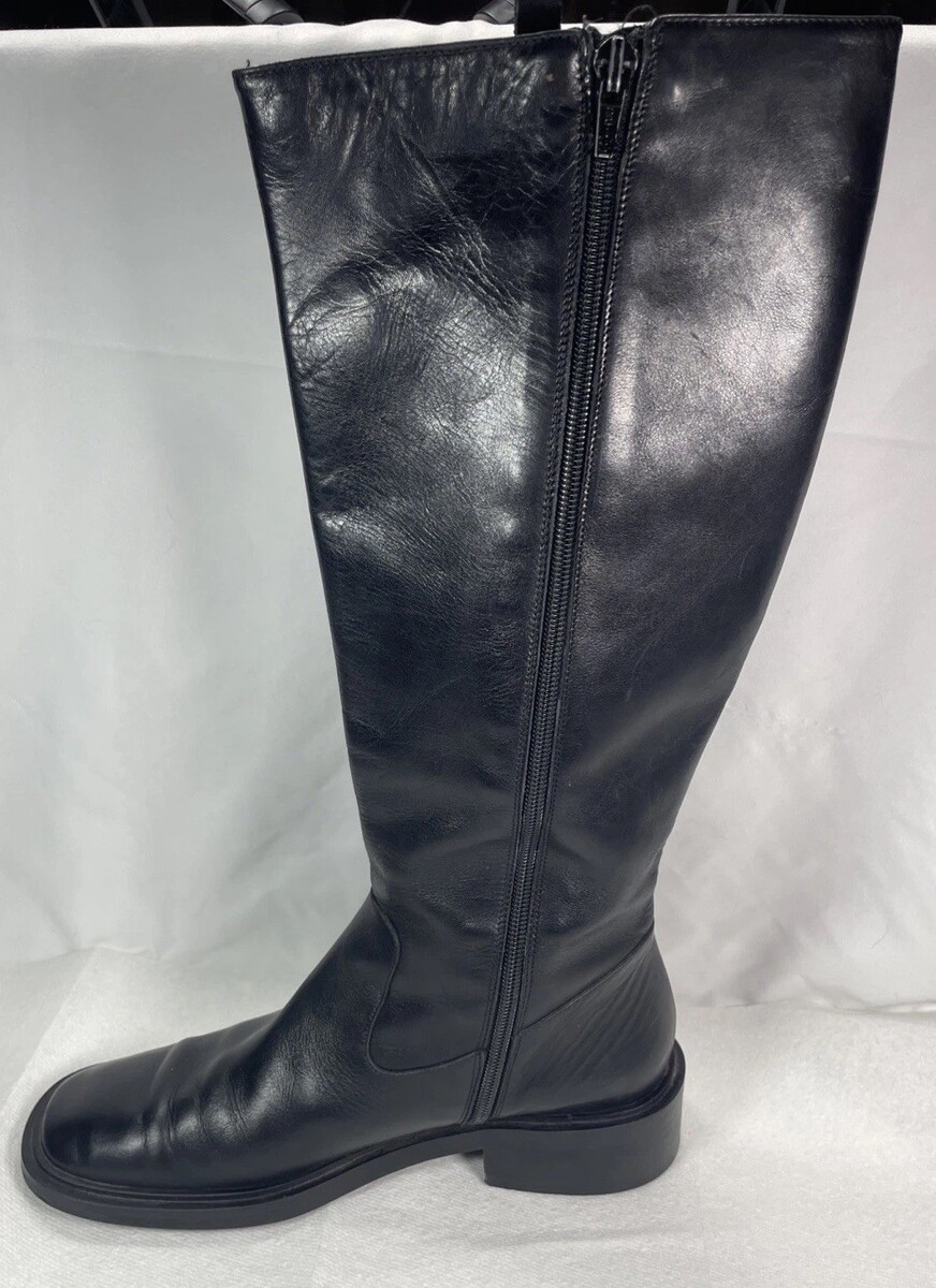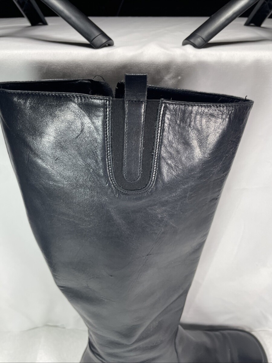 Women's Black Leather Knee High Zip Up Boots Size 9 Stretch Calf Howard Powell