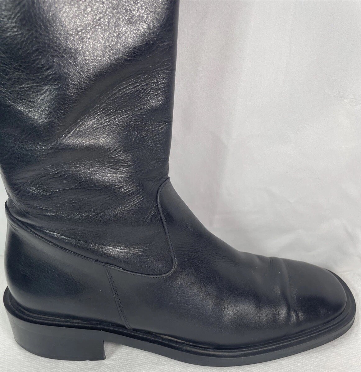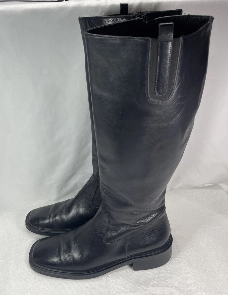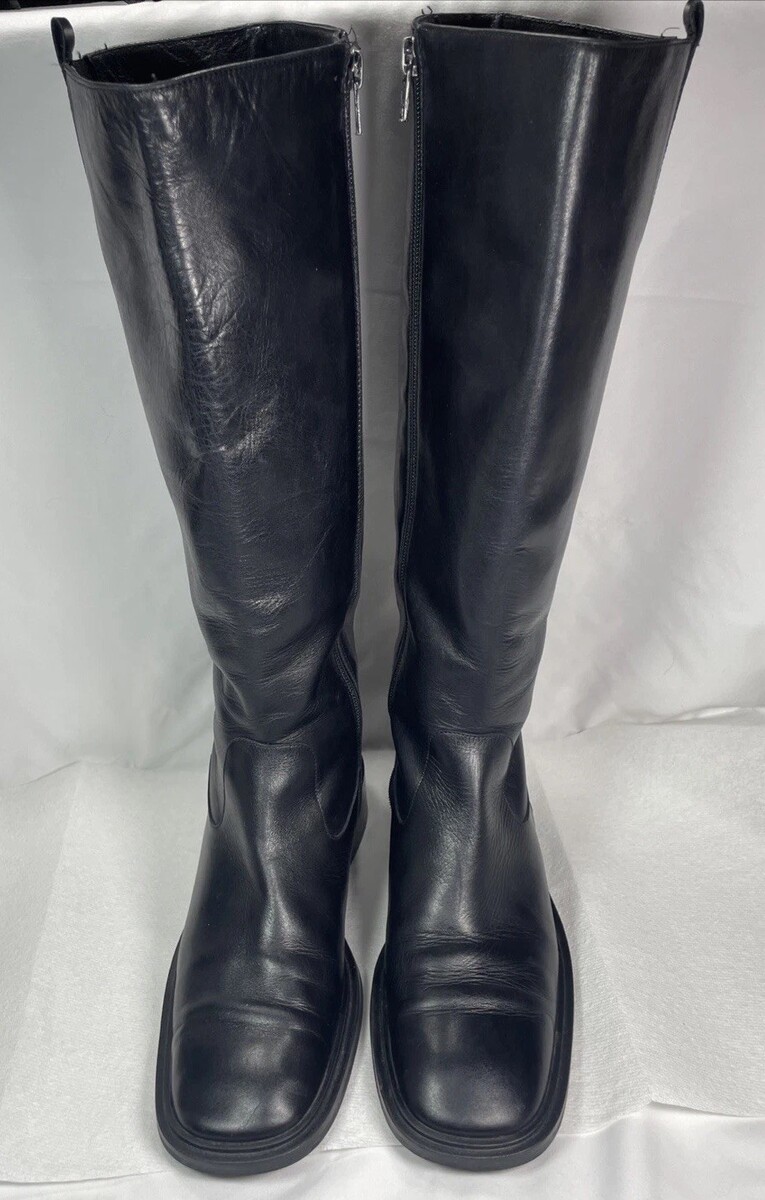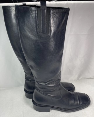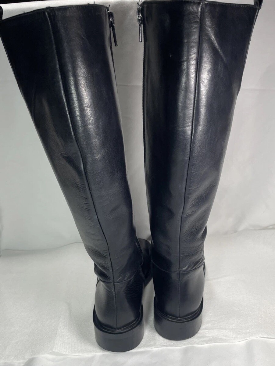 Women's Black Leather Knee High Zip Up Boots Size 9 Stretch Calf Howard Powell