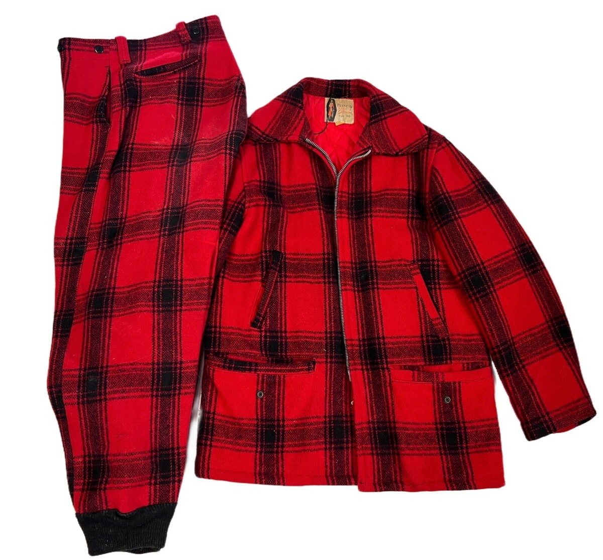Authentic VTG 60s Penneys Wool Mackinaw Jacket & Pants Red Buffalo Plaid 38 M-L