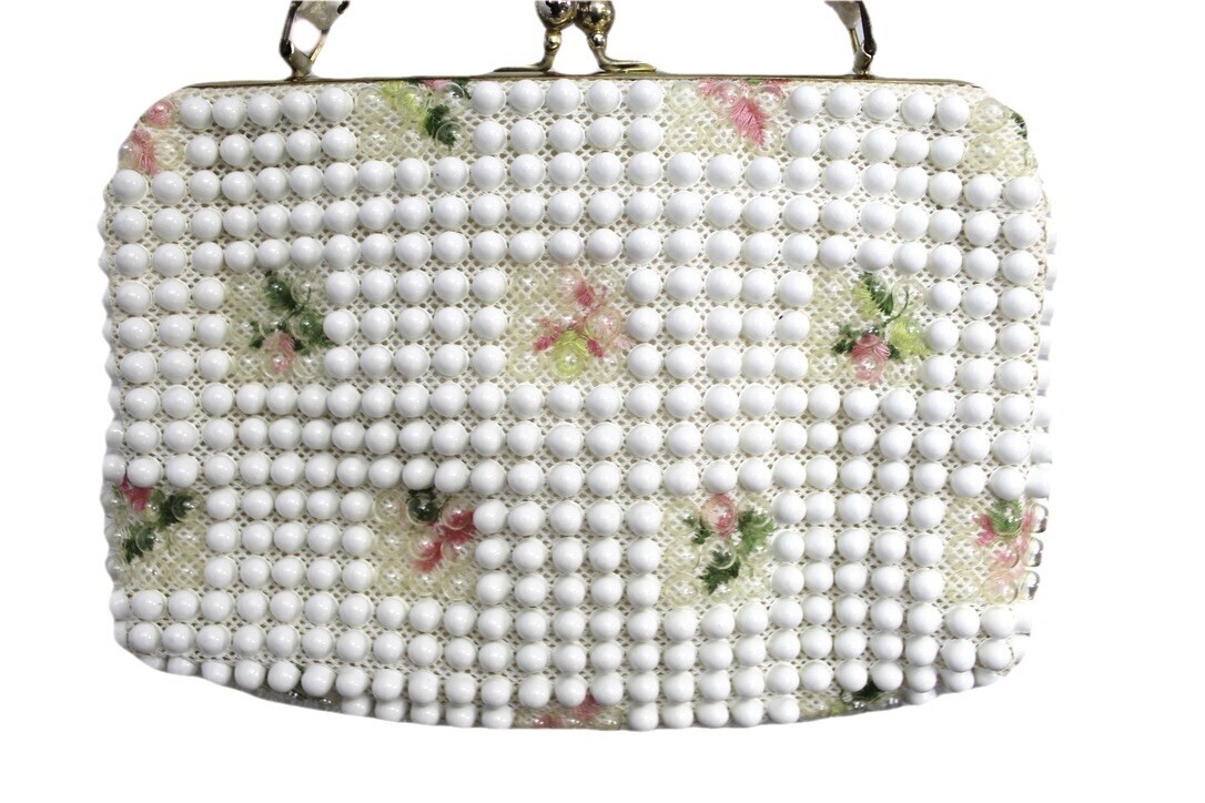 Retro 50s Grandee Bead White Beaded Bag and similar items