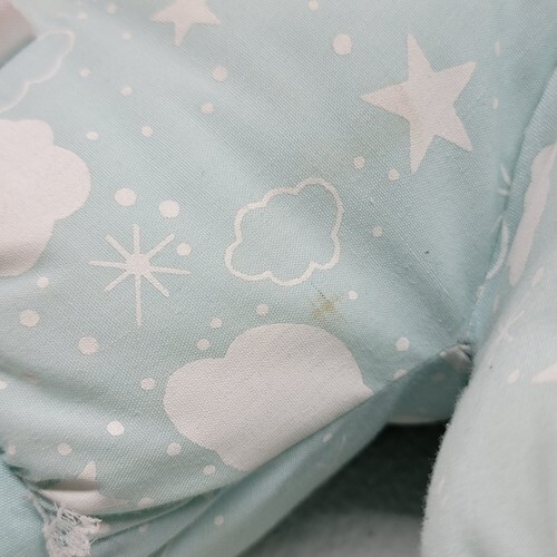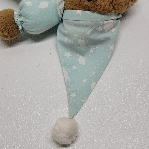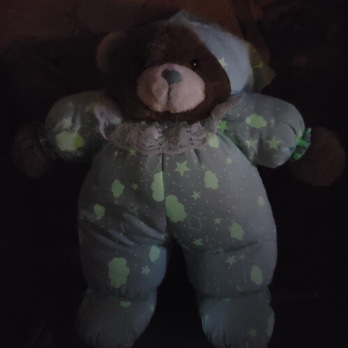 Vintage Glow In The Dark Teddy Bear Plush Blue Nose Bedtime Pajamas Stars Clouds. Some small spots, see images for condition. Images show actual item that will ship.