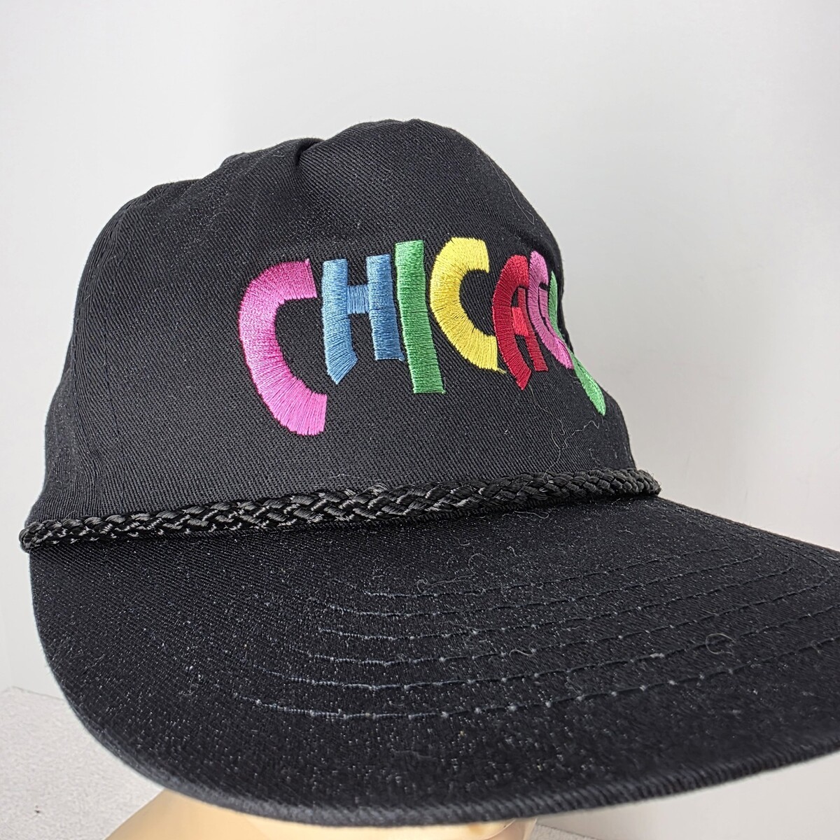 Vintage Black Chicago One Cool City Hat Rainbow Snapback Black Rope Cap