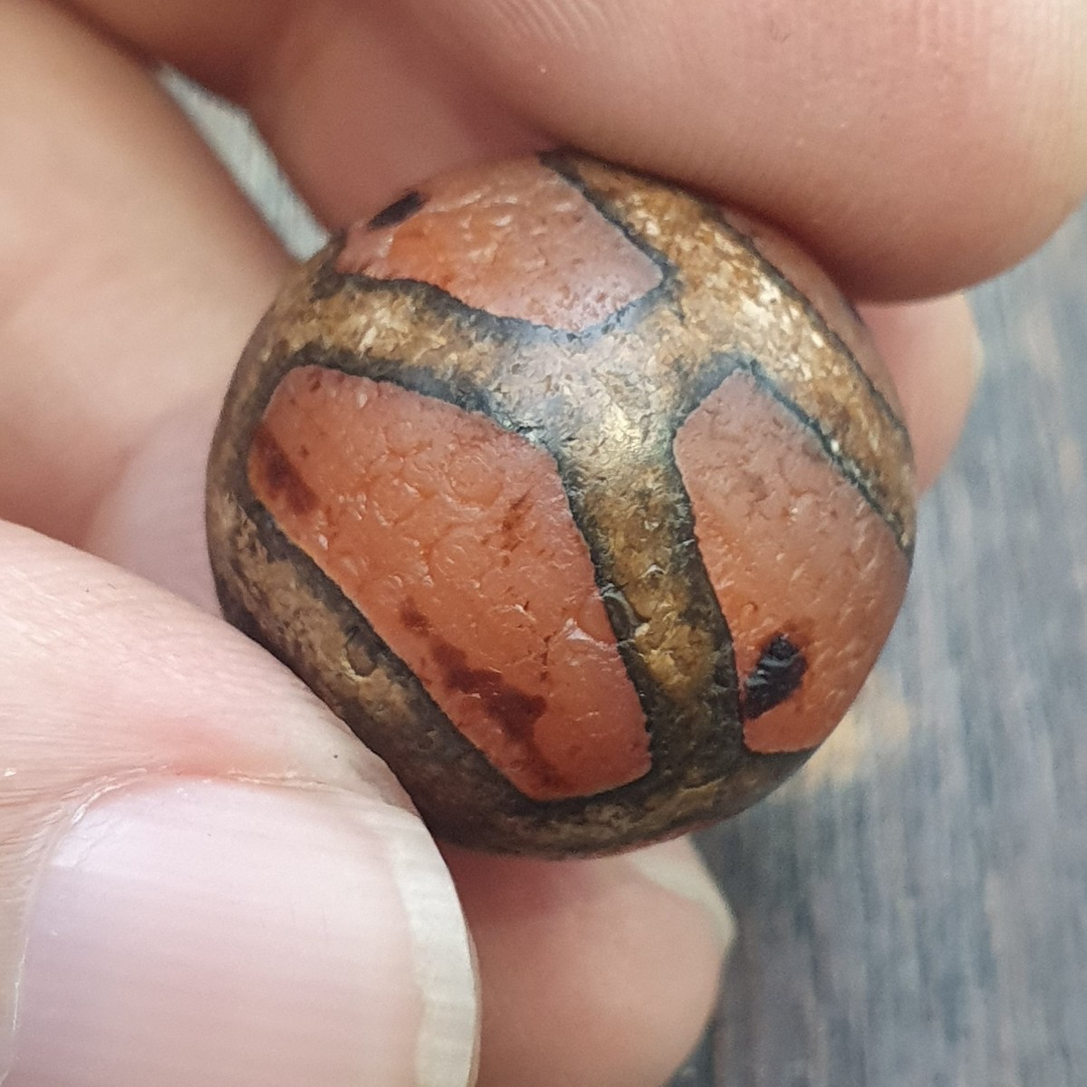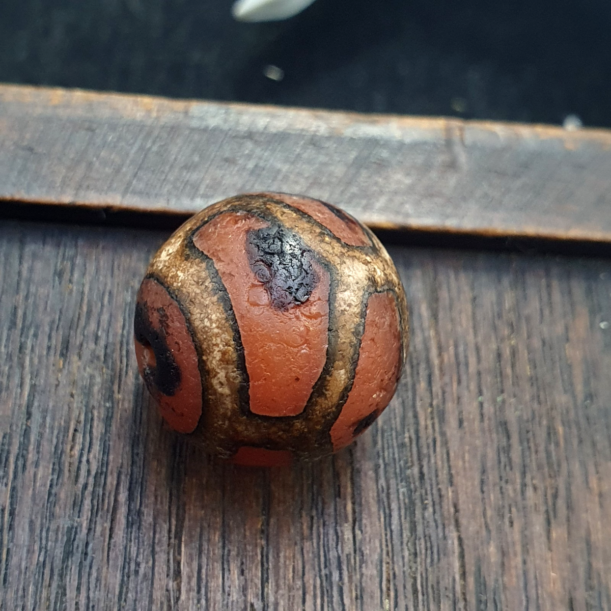 Old Tibetan Himalayan Etched agate Decorated amulet bead 20 mm #ETC1