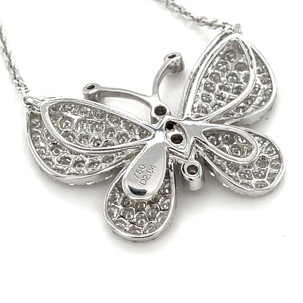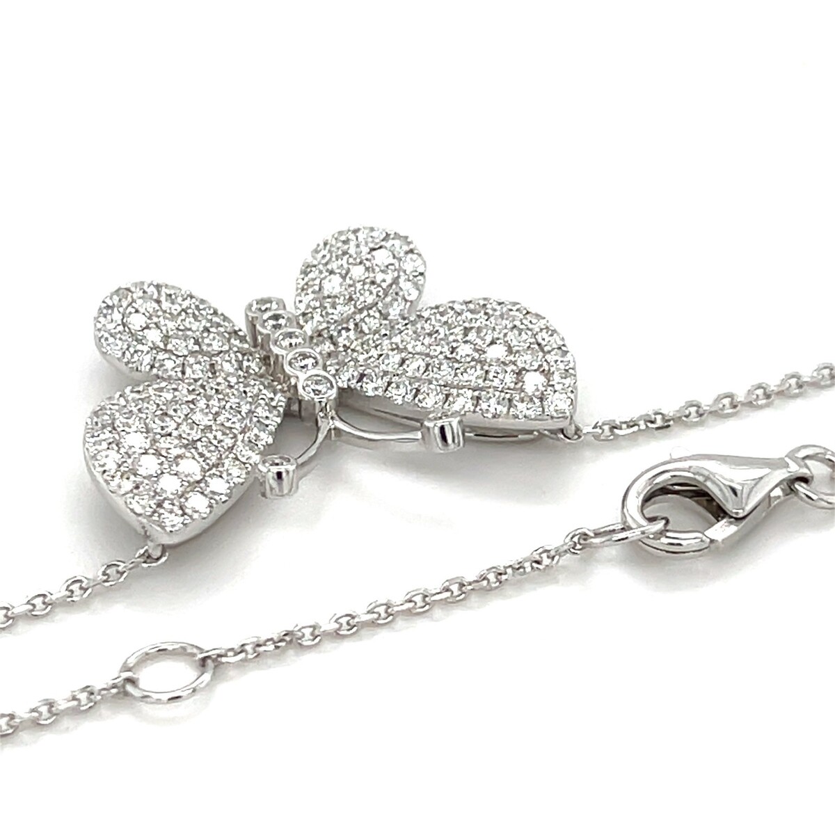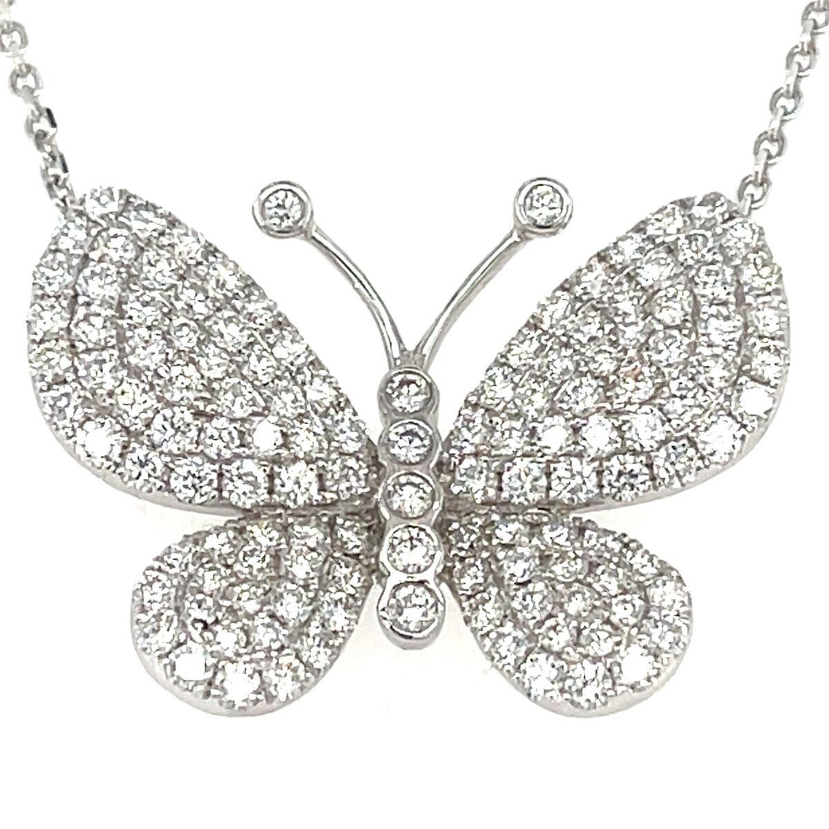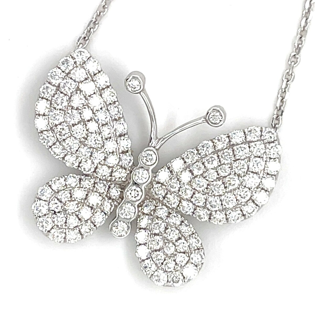18k White Gold 2.04 ct Pave Diamond Butterfly Pendant w/ 16" Chain Gorgeous!