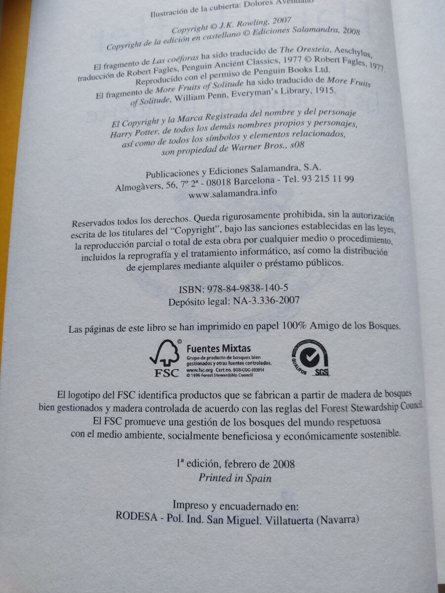 Harry Potter Deathly Hallows J K Rowling 2007 Salamandra - Book Spanish