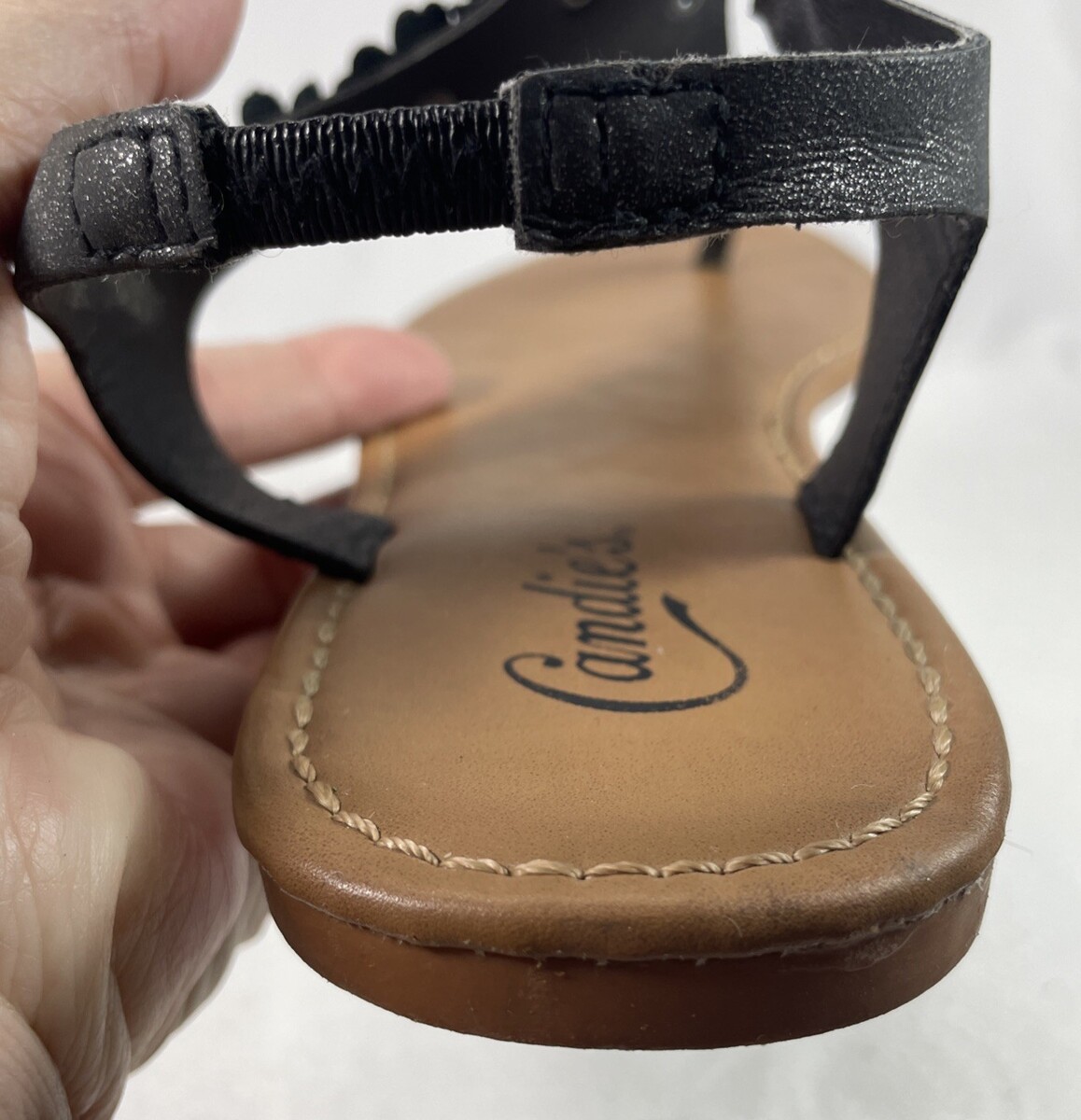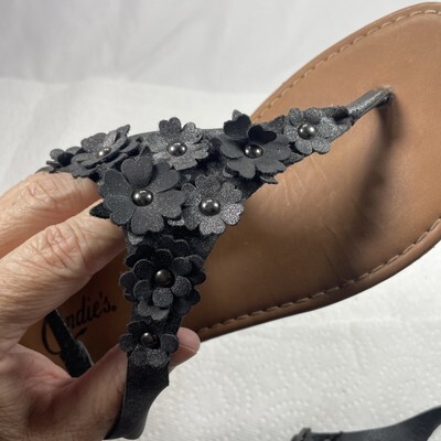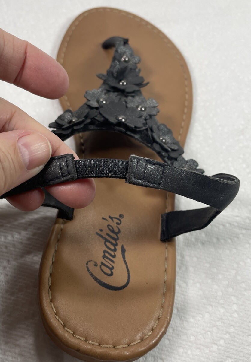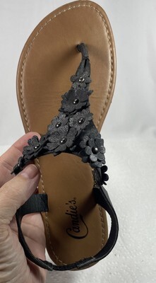 The product is a women's size 8.5 black leather thong sandal by Candie's. It is designed for the spring season and is categorized under women's shoes. The style is cute and trendy, making it perfect for summer and vacation wear. With a comfortable fit and stylish design, these sandals are a versatile addition to any woman's shoe collection.
