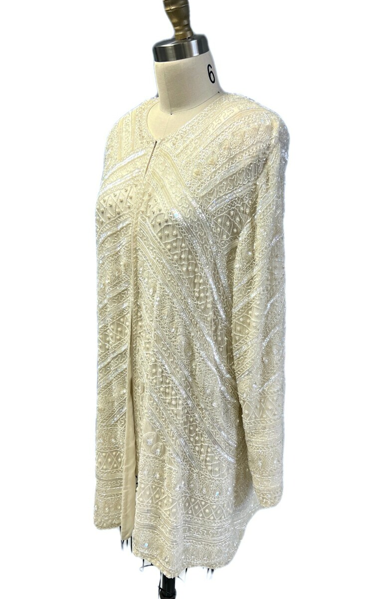 VTG Diane Freis Original Jacket XL Ivory Silk Heavy Beading Boho Evening NWT