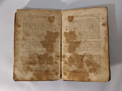 Up for sale is a 1796 edition of Mrs Griffiths Letters to Young Married Women published by John Turner in Philadelphia, PA. The book is as is and in poor condition.