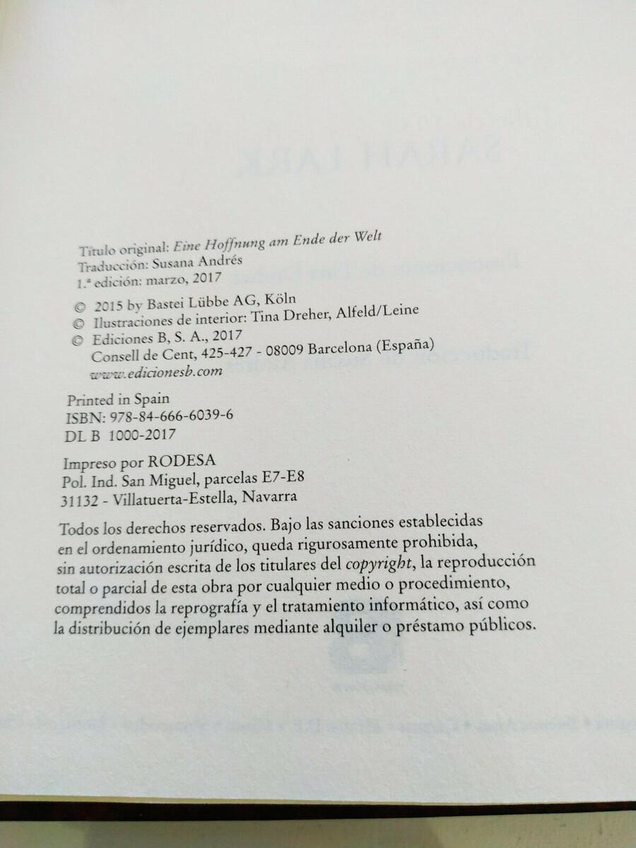 Una Promise IN el Fin del World Sarah Lark 2017 - Book Spanish Am