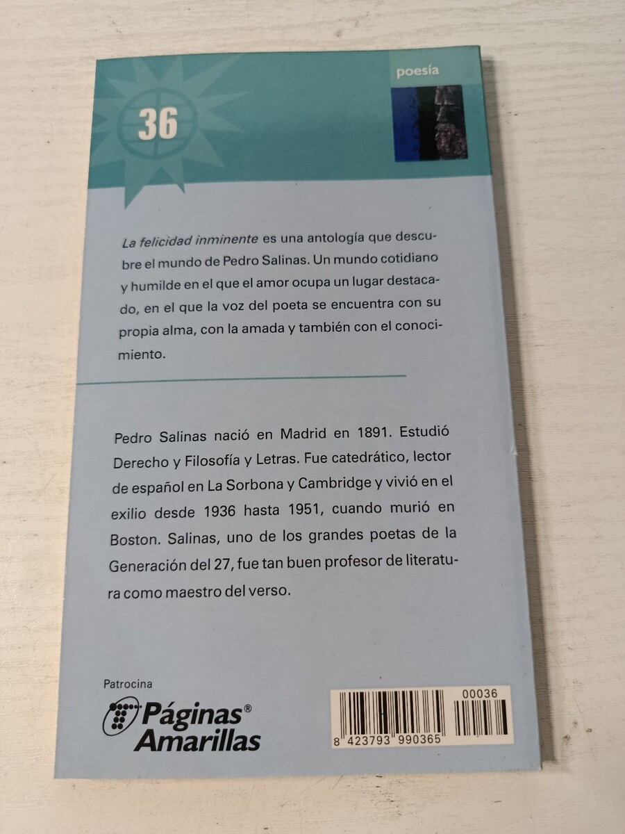 Pedro Salinas Buch, unmittelbares Glück, el Mundo Library, Spanische Poesie, Generation del 27, Literaturdel 20. Jahrhundert, Buchde Presse, neuartige Sammlungdelverano , Poetische Arbeit Salinas, intime Poesie