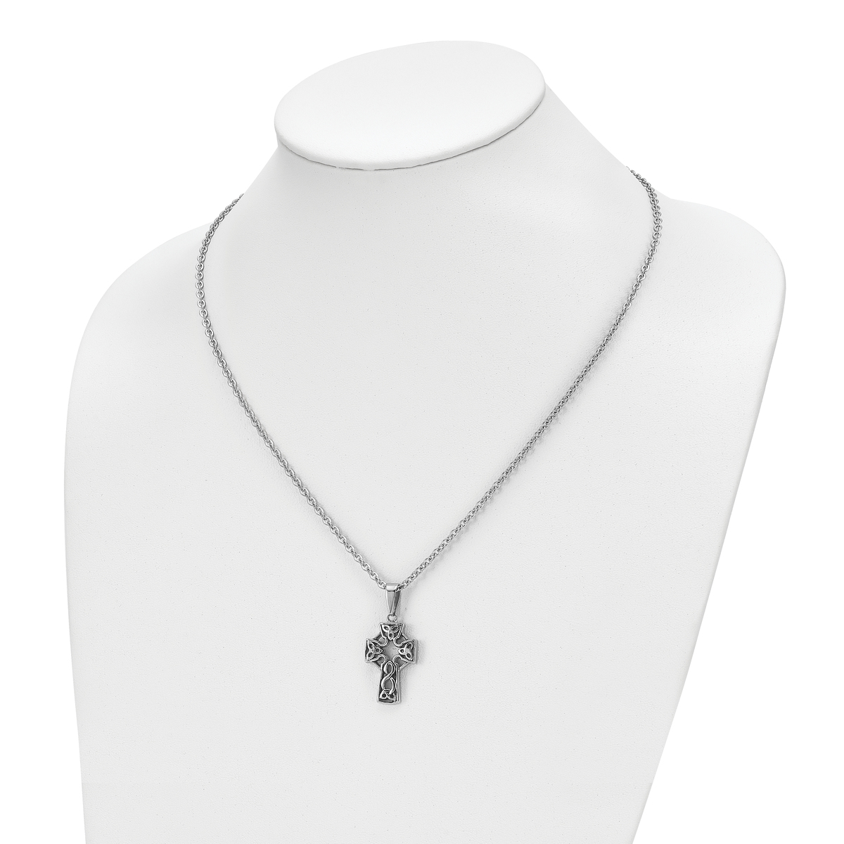 Chisel Stainless Steel Antiqued and Brushed Celtic Cross Pendant on an 18 inch C
