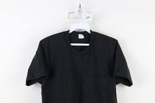 Vintage 90s Streetwear Mens Medium Faded Blank Cotton Pocket T-Shirt Black USA