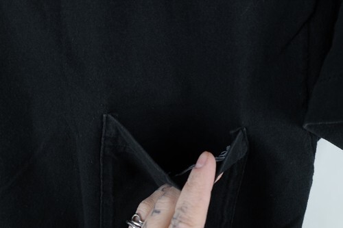 Blemish front bottom. Hole left arm. Color fade. USA made