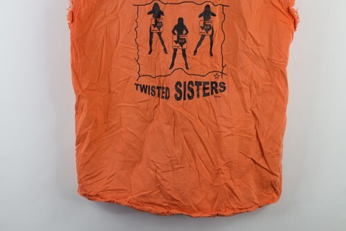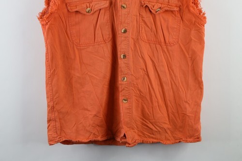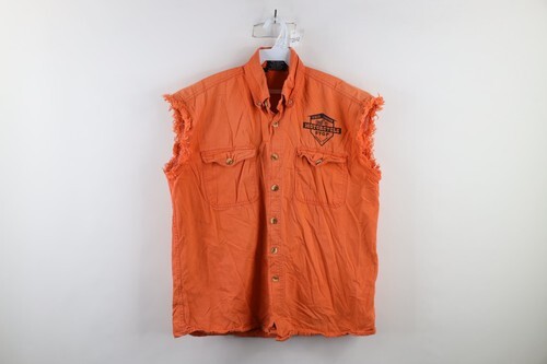 Vtg Y2K Mens M Faded Texas Motorcycle Twisted Sisters Cut Off Denim Button Shirt
