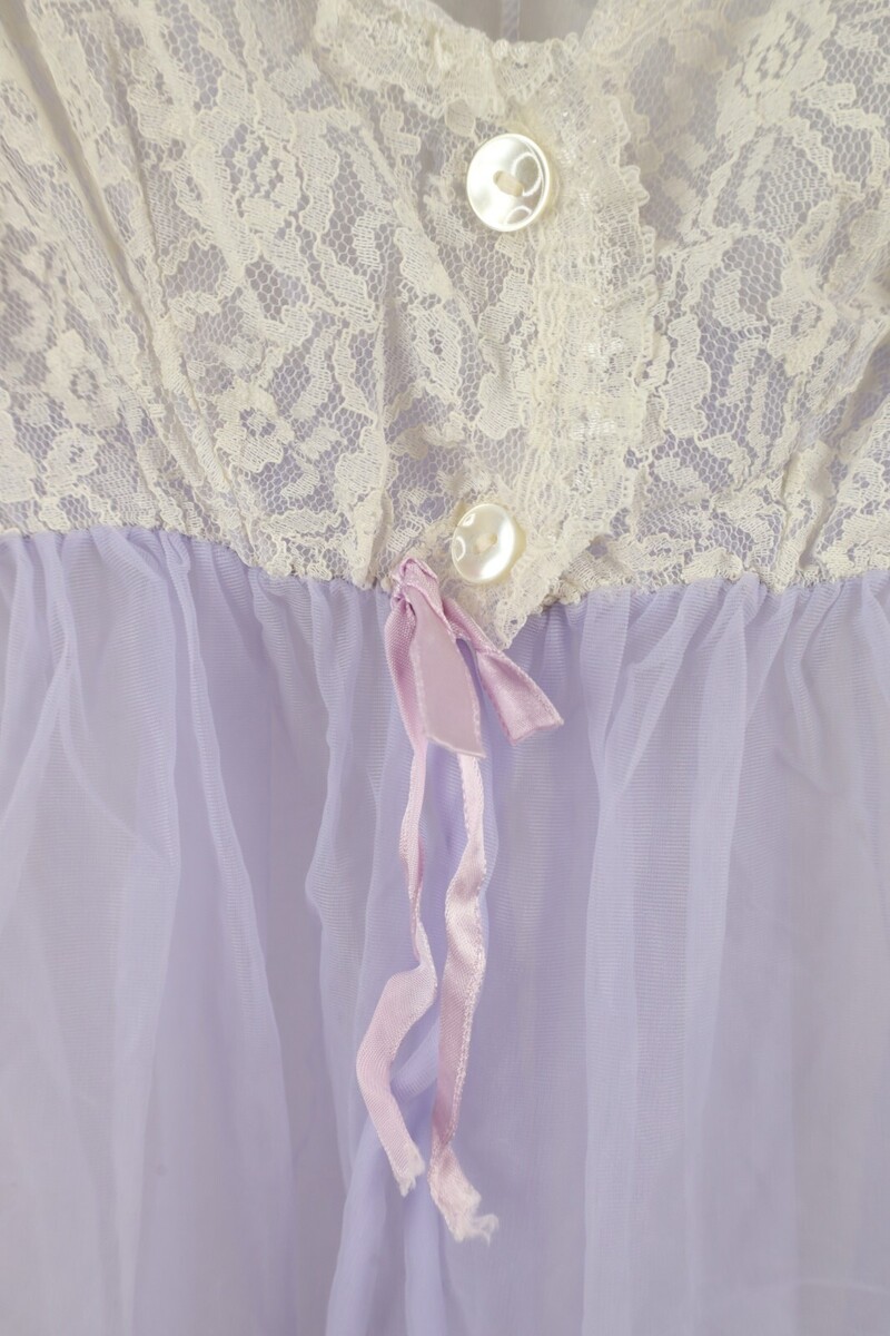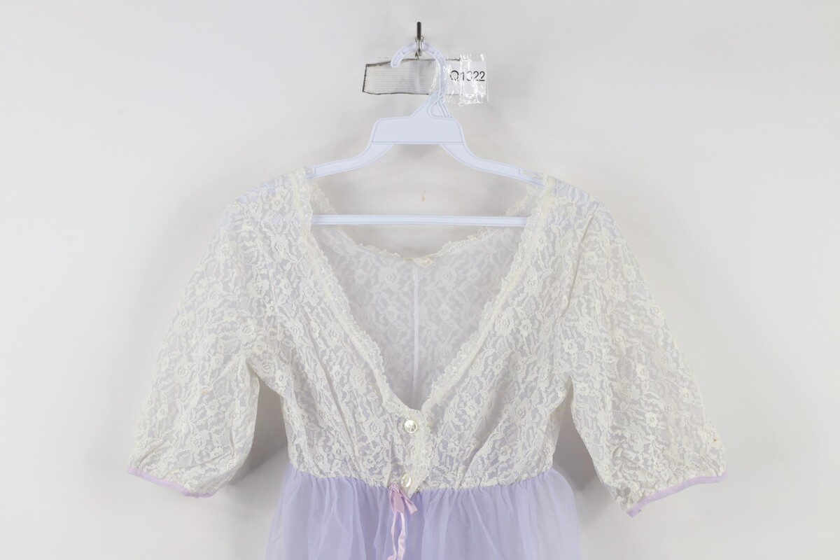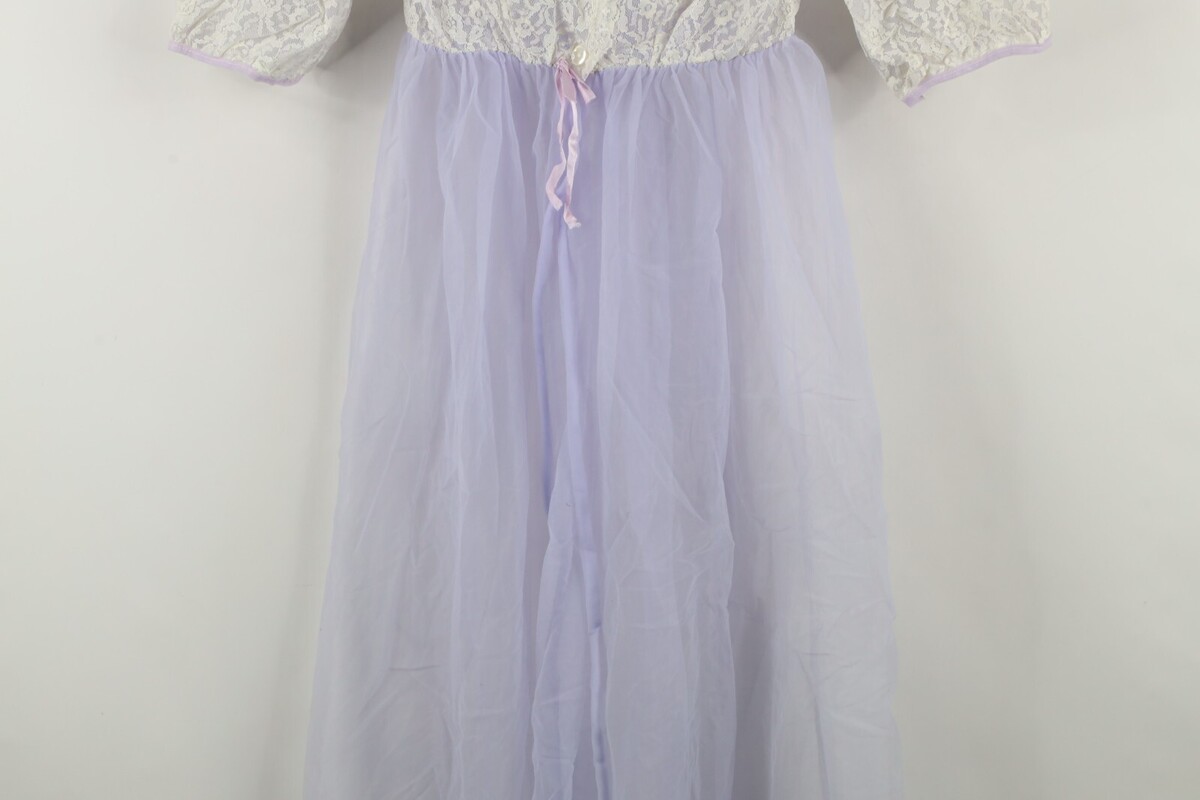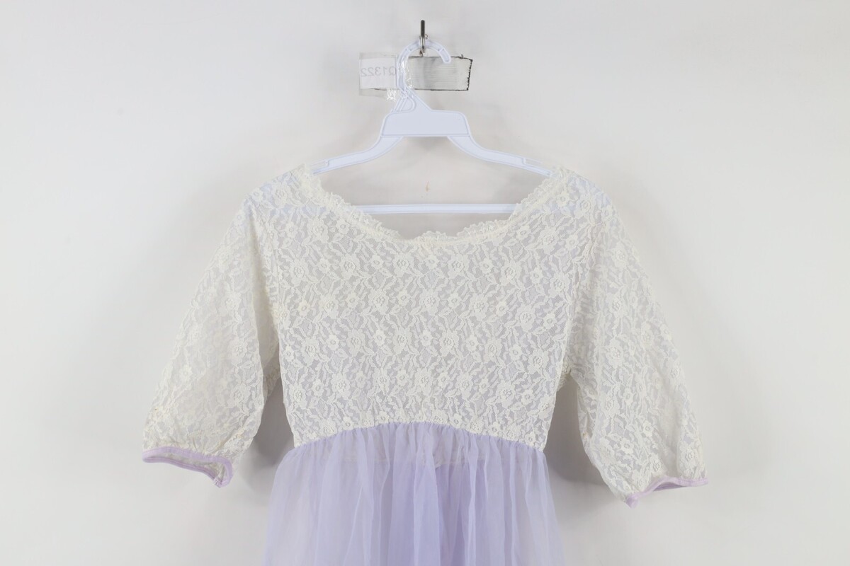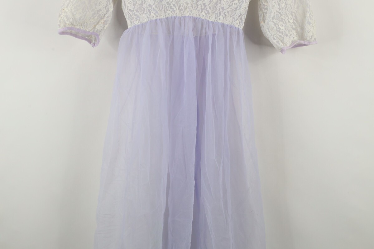 Vtg 50s 60s Womens Medium Sheer Fairy Lace Flower Chiffon Night Gown Sexy USA