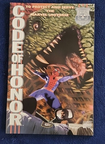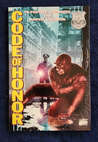 This comic book lot features the complete series of Code of Honor: To Protect and Serve the Marvel Universe, including issues 1 through 4. The set includes Spider-Man (Peter Parker) and Daredevil (Matt Murdock) characters, and is published by Marvel Comics. The trade paperback format is ideal for collectors of modern age (1992-now) US comics.