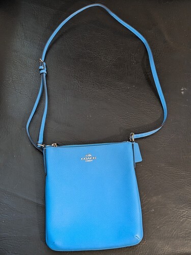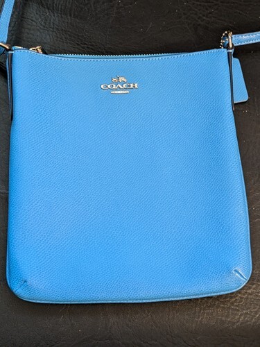 Sac A Bandouliere Coach New York En Cuir Texture Bleu 9 X 9 Po