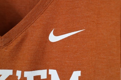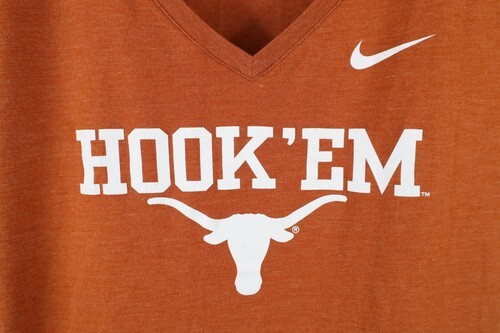 Nike Womens XL Distressed Spell Out Hook Em University of Texas V-Neck T-Shirt