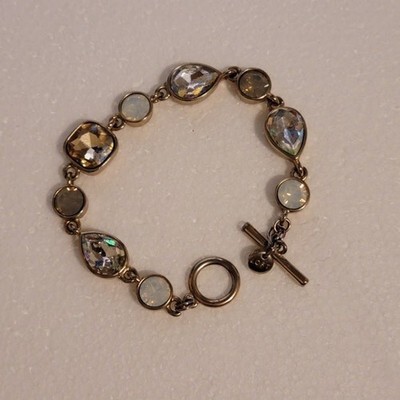 Gold Tone Crystal and Opalite Link Bracelet with Toggle Clasp