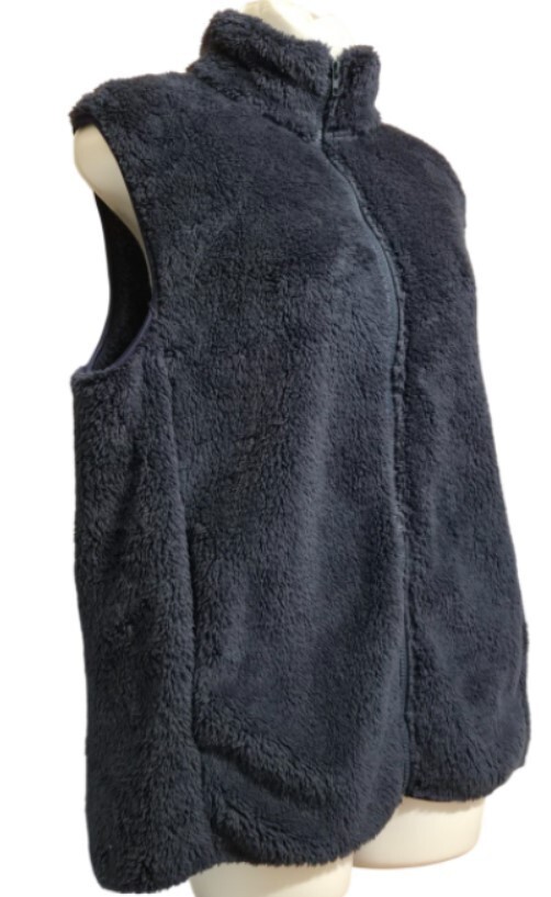 Women Fleece Polyester Knit Fabric with Elastane Casual Lapel Zip Vest - NEW