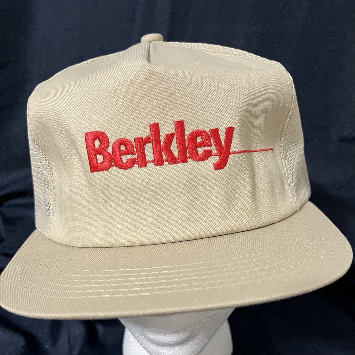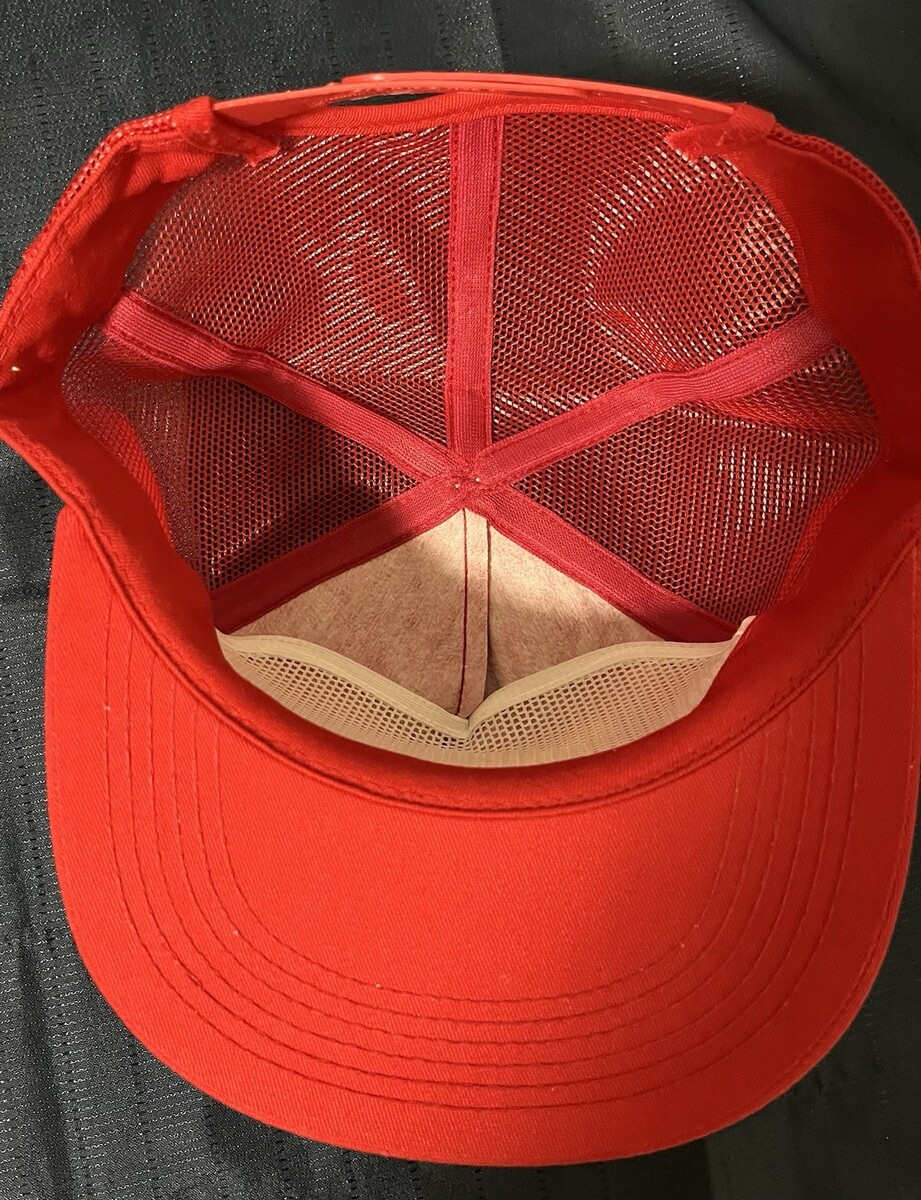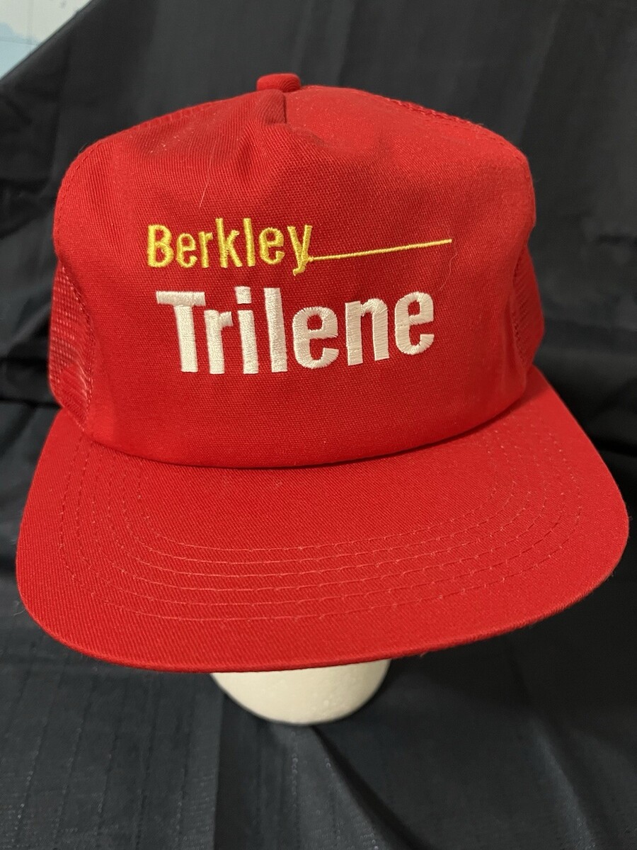 This product is two men's Berkley Trilene fishing hats that features a red one and a tan one with mesh back design, making them perfect for outdoor activities. The adjustable snapback style ensures a comfortable fit, while the 100% cotton material provides durability. With a vintage look and a fish theme, this baseball cap is a stylish accessory for any fishing enthusiast, suitable for all seasons. Proudly made in the United States, this hat is a must-have for any fishing trip or outdoor adventure. 2 Hats For One Price. Both are new old stock.
