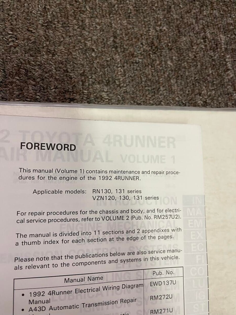 1992 TOYOTA 4RUNNER SERVICE MANUAL SET