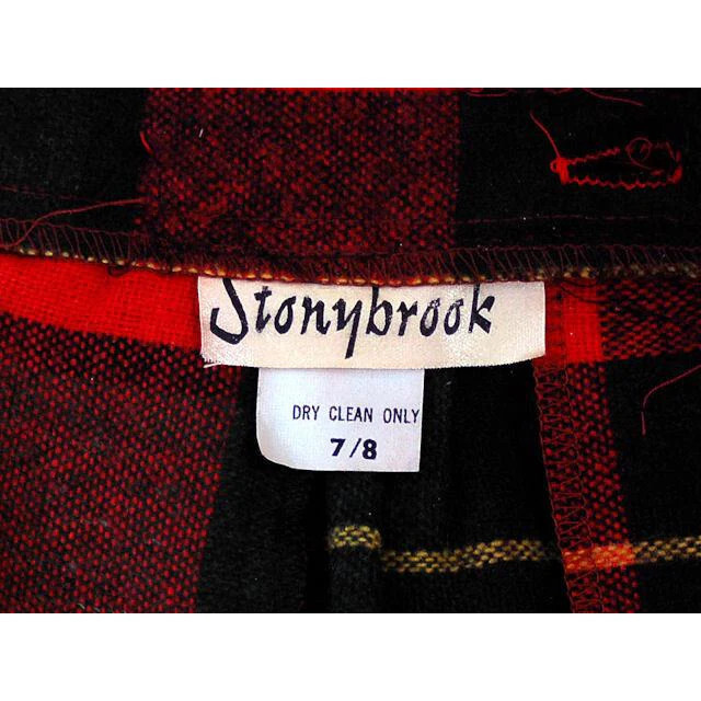 Stonybrook was a mid-tier American brand specializing in quality separates during the 1970s?80s. This skirt exemplifies the decade?s nostalgia for 1950s fashion, reintroducing pencil silhouettes and bold plaids with practical details like slash pockets and brass military-inspired buttons.