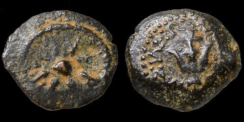 In circulation during the life of Christ Jerusalem mint. These and similar small Hasmonean dynasty coins such as the Widow's mites from the same time and referenced in Mark 12:42-44 and Luke 21:2-4--Jesus tells the story of the Widow who gave all she had, two "mites" --all circulated for nearly 200 after they were minted and were used in Jerusalem until the destruction of the Temple in 70 AD.