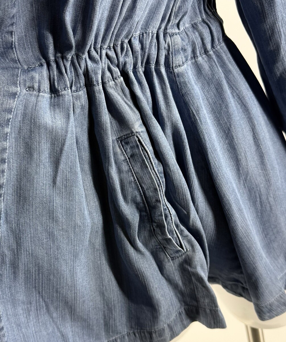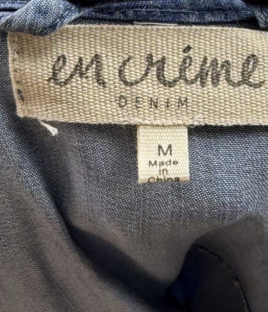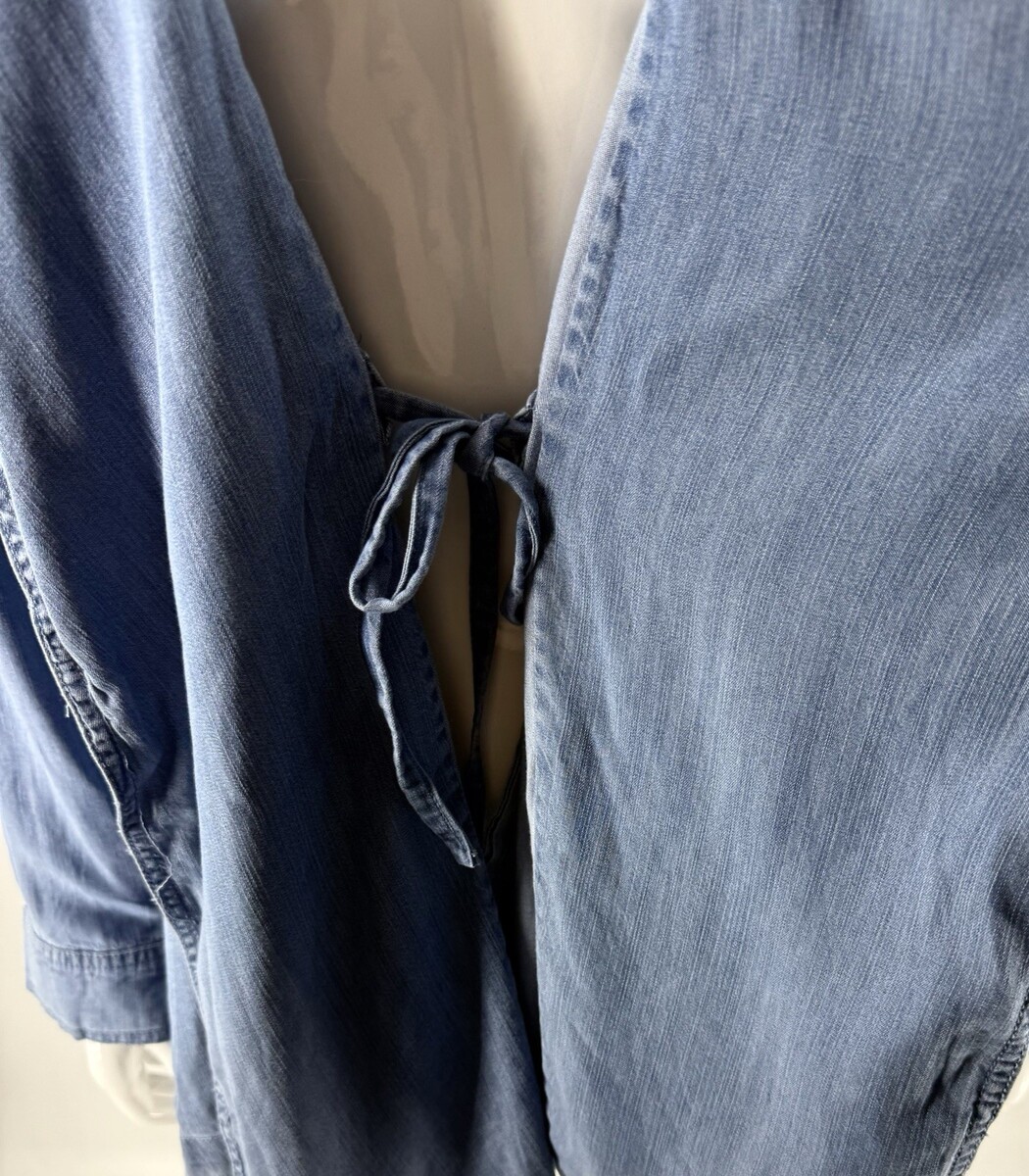 En Creme Lightweight Chambray Denim Jacket Size M Blue Tie Front Draped Womens