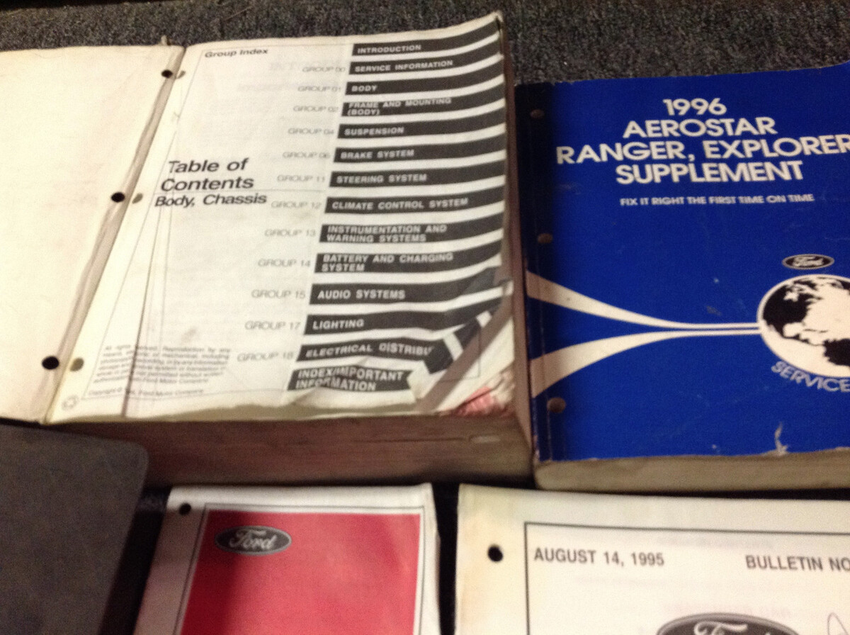 1995 Ford AEROSTAR, RANGER, EXPLORER 2 VOLUME SERVICE MANUAL SET, SERVICE MANUAL SUPPLEMENT, ELECTRICAL WIRING DIAGRAM MANUALS, POWERTRAIN CONTROL EMISSION DIAGNOSIS MANUAL,SPECIAL TOOLS BOOK, TECHNICAL SERVICE BULLETINS