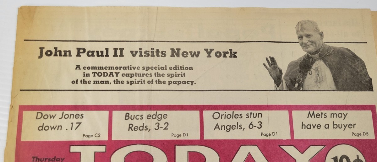 *L3) Today Newspaper October 4, 1979 Pope John Paul II Visits New York