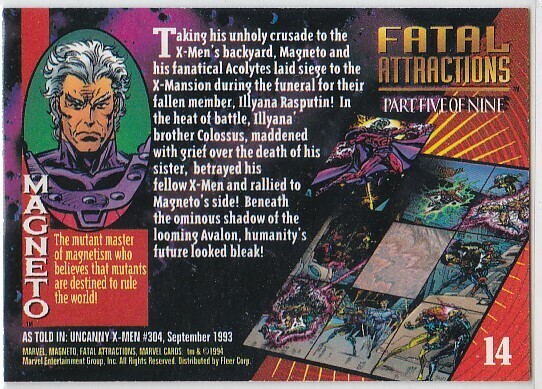 N) 1994 Marvel Universe Comics Trading Card Fatal Attractions Magneto #14