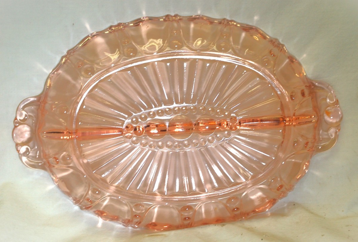Oyster Pearl Celery Relish Dish Pink Depression Glass Anchor Hocking Divided
