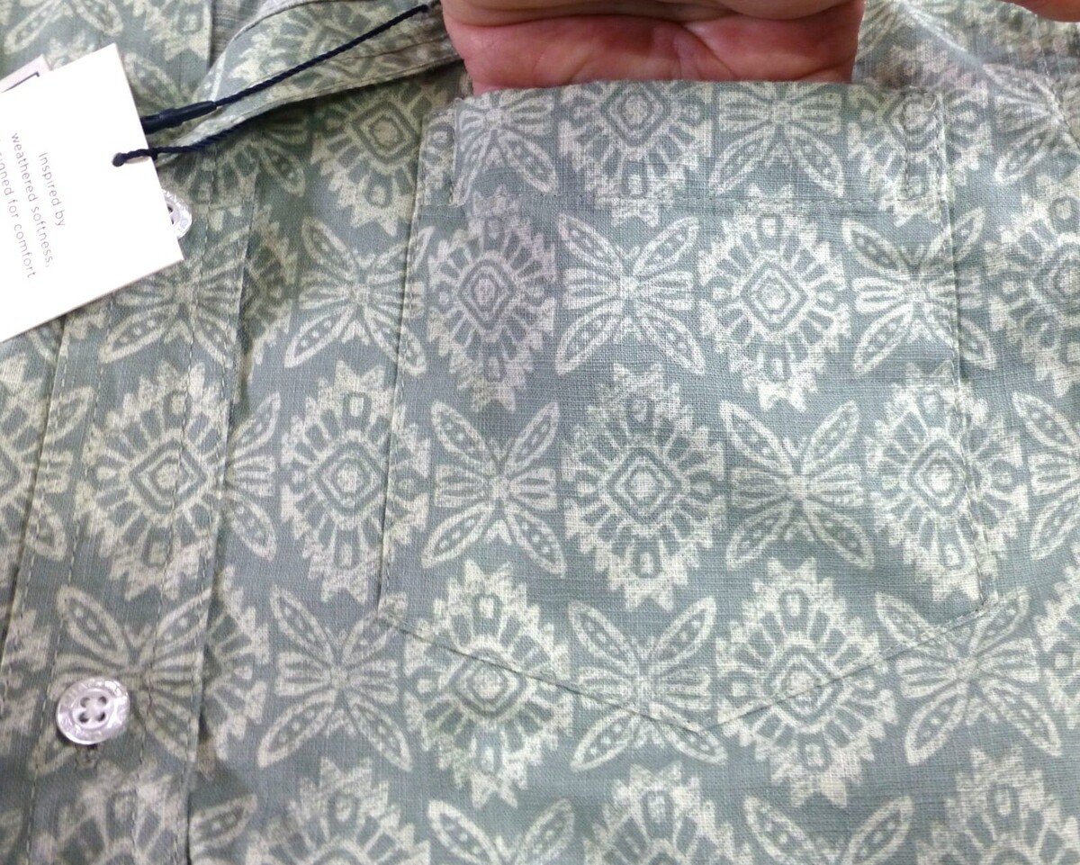 Chaps Seacoast Wash Small Chambray Woven Fairway Green Patterned Button Up Shirt