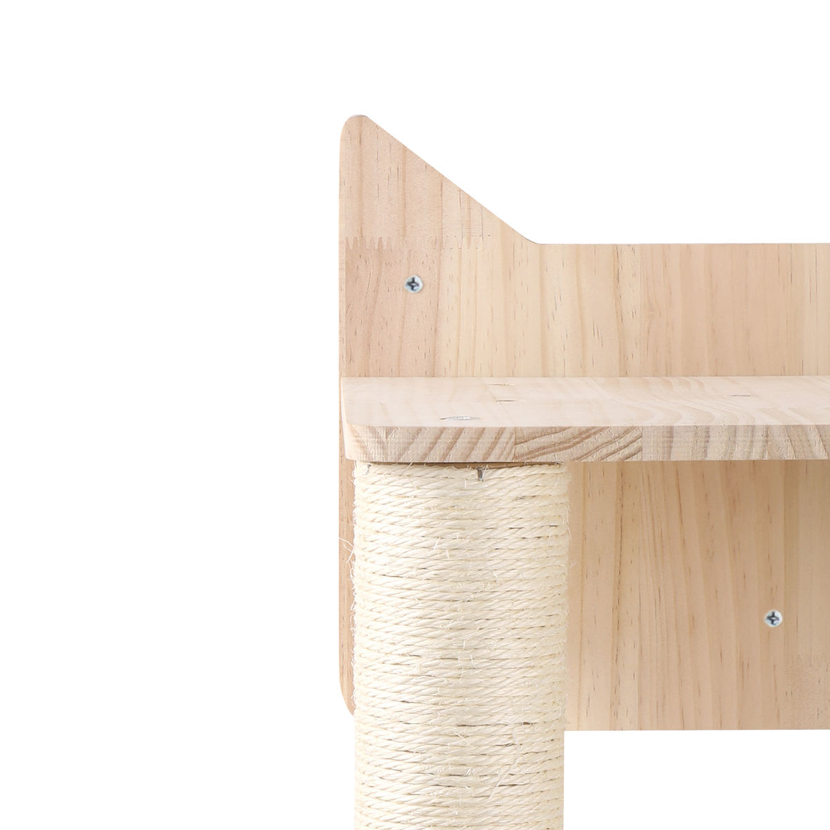 Comfortable and Durable Material: Made from E0-grade pine wood, this wall mounted cat shelf is sturdy and durable, capable of supporting up to 40 lbs (18.14 kg). The natural pine wood is non-toxic and odorless, allowing cats to climb and play safely. The platform surface is covered with a plush pad for slip-resistance and softness, protecting your cat's paws.