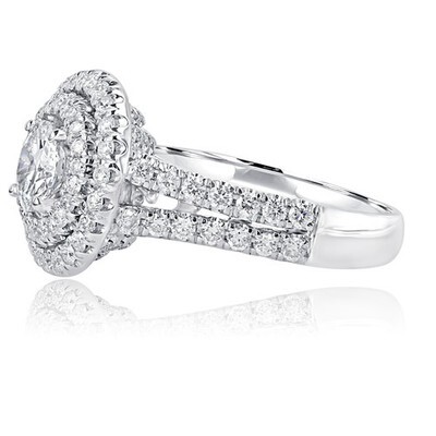 Double Halo 1.95 CT Coupe Ronde Naturel Anneau Fiancailles Diamant 14k or Blanc