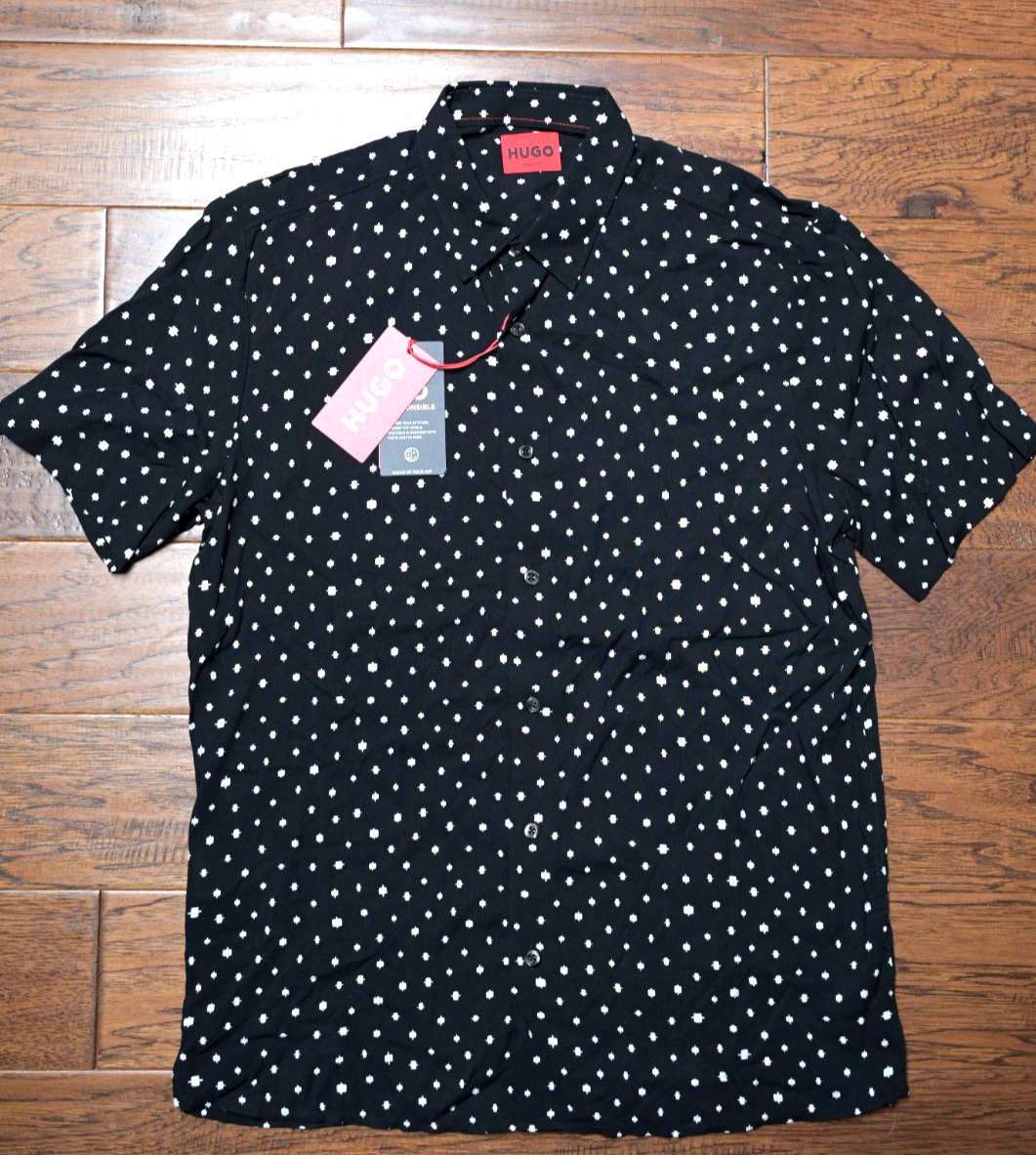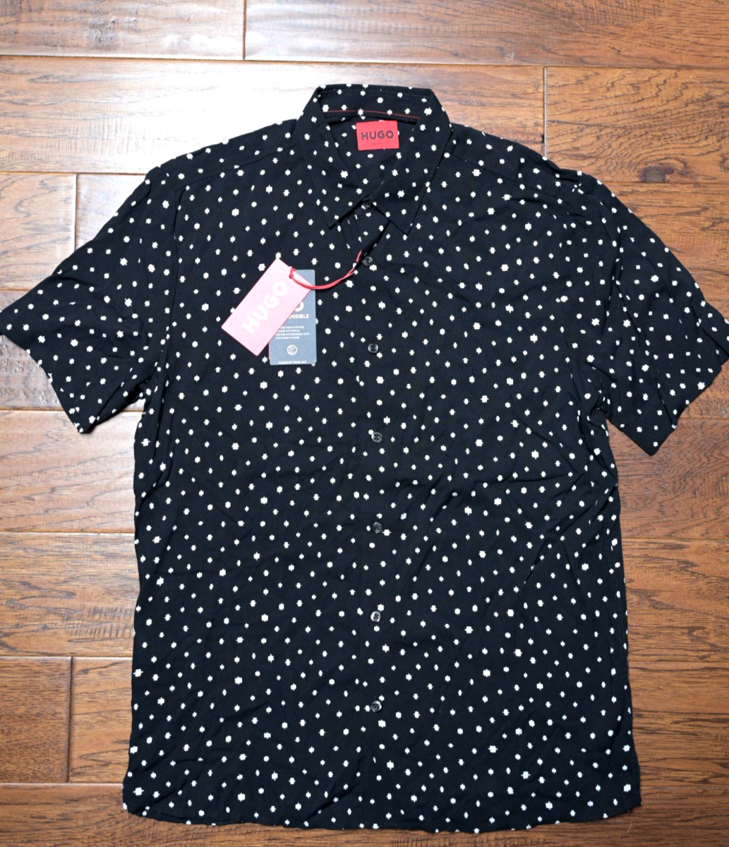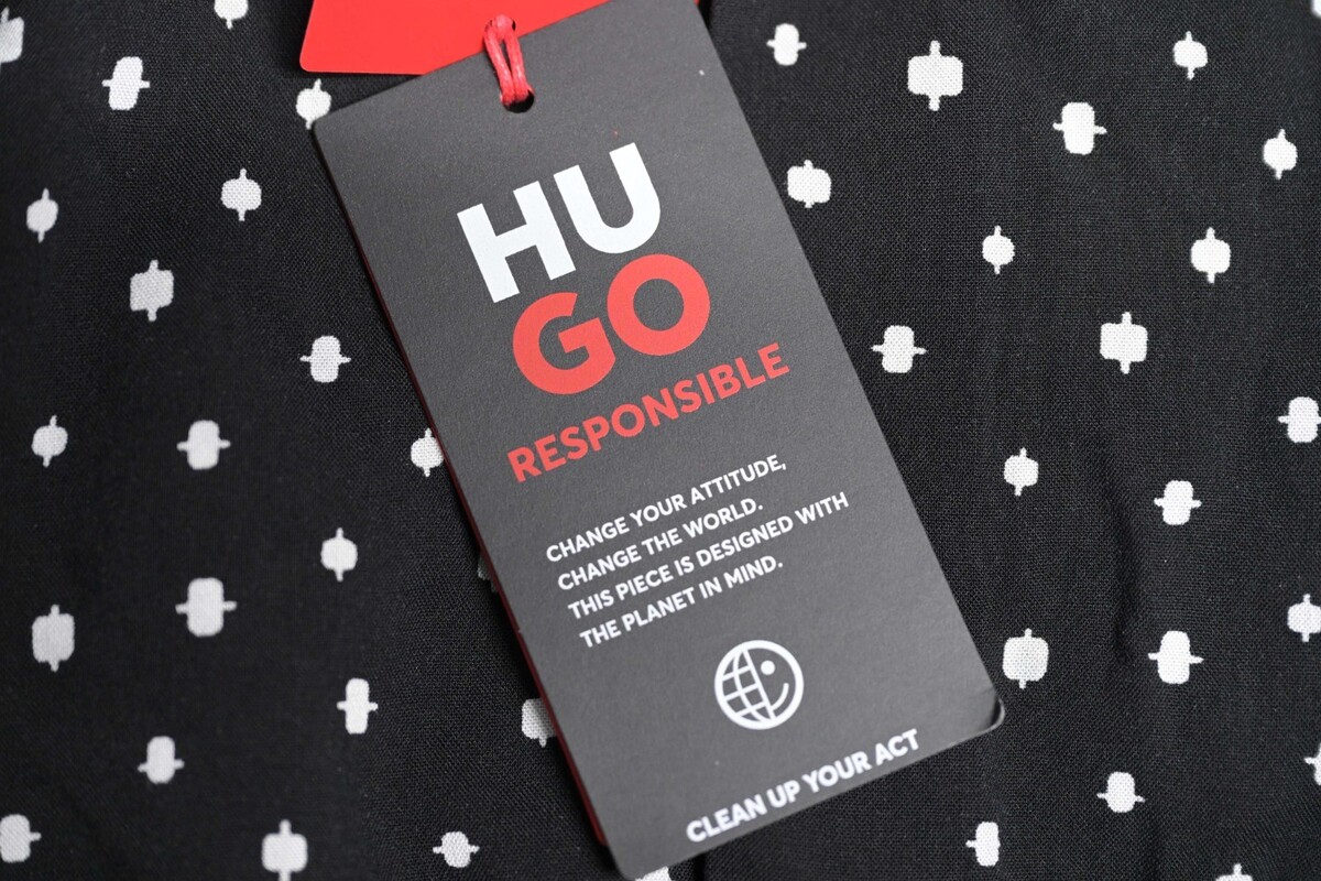 CNT Hugo Boss Men's's Ebor Sleeve Straight Fit Black Spotted Casual Casual