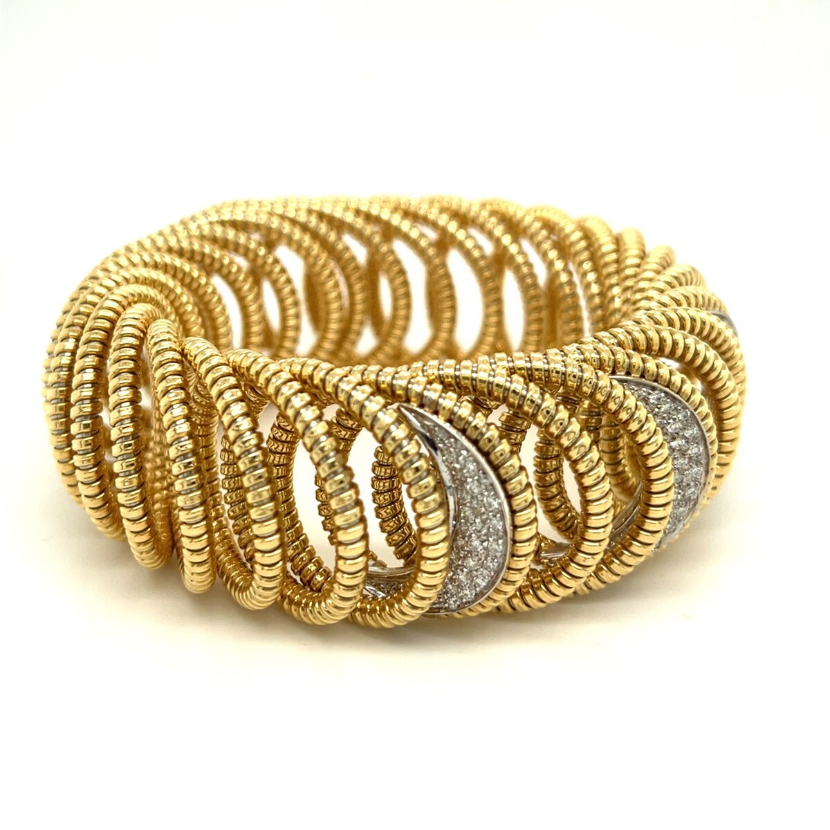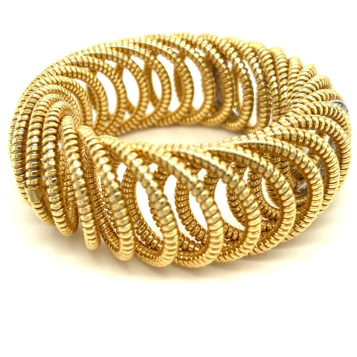 18k Yellow Gold Coil Spring Bracelet with Appx 2.6 ct Diamond Accents