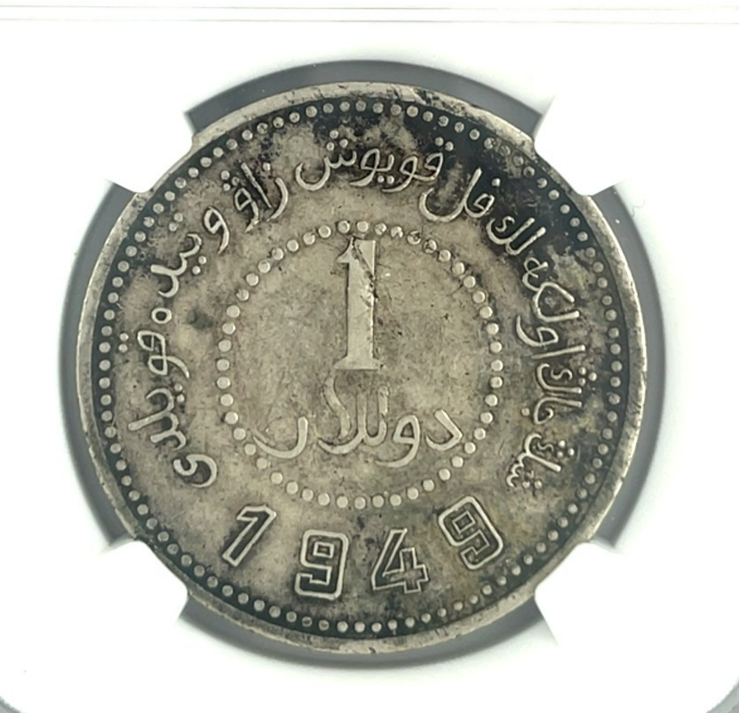 1949 China S$1 Dollar Sinkiang L M-842 Pointed Base 1 by NGC as XF 40!
