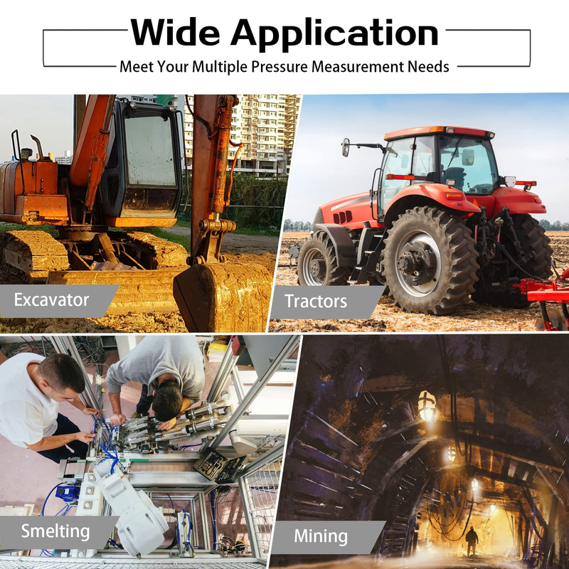 ?Wide Application: This hydraulic pressure gauge kit fits for construction machinery, excavator, tractor, bulldozers and many more farm equipment.