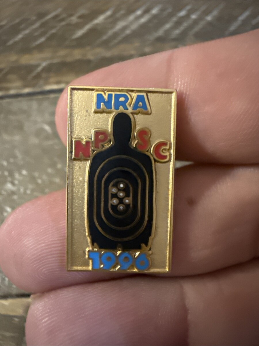 The NRA NPSC 1996 Pin is a collectible item that commemorates the National Rifle Association's National Pistol Shooting Championships held in 1996. This pin features the iconic NRA logo and likely includes specific details about the event or competition. As a piece of memorabilia, it holds a special significance for collectors and enthusiasts of firearms and shooting sports.