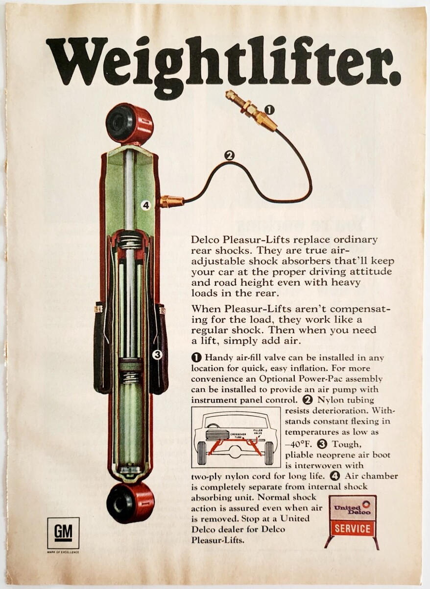 1968 Delco Pleasur-Lift Shocks Advertisement Vintage Automobilia GM Parts DWF23