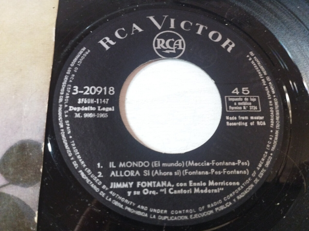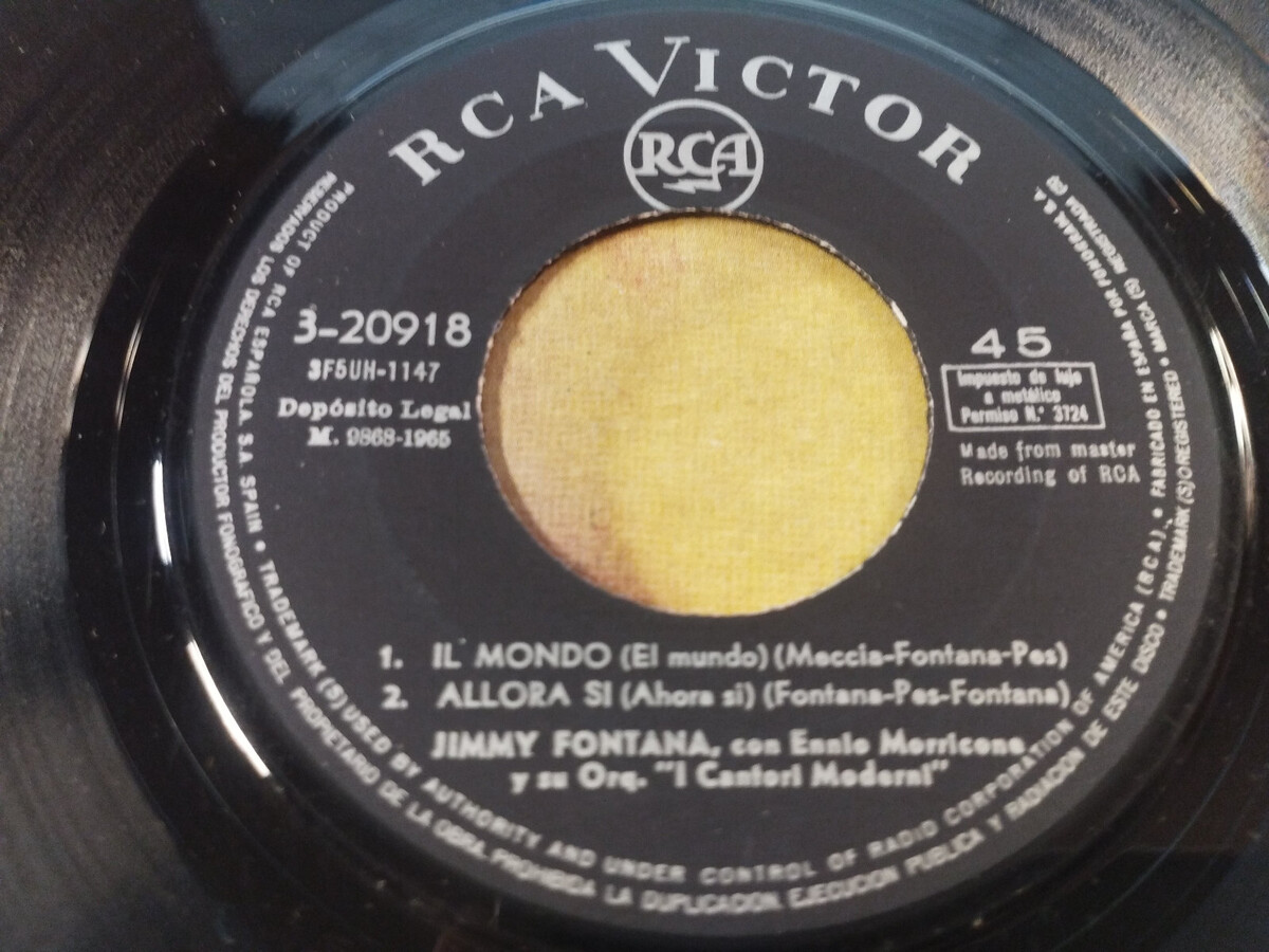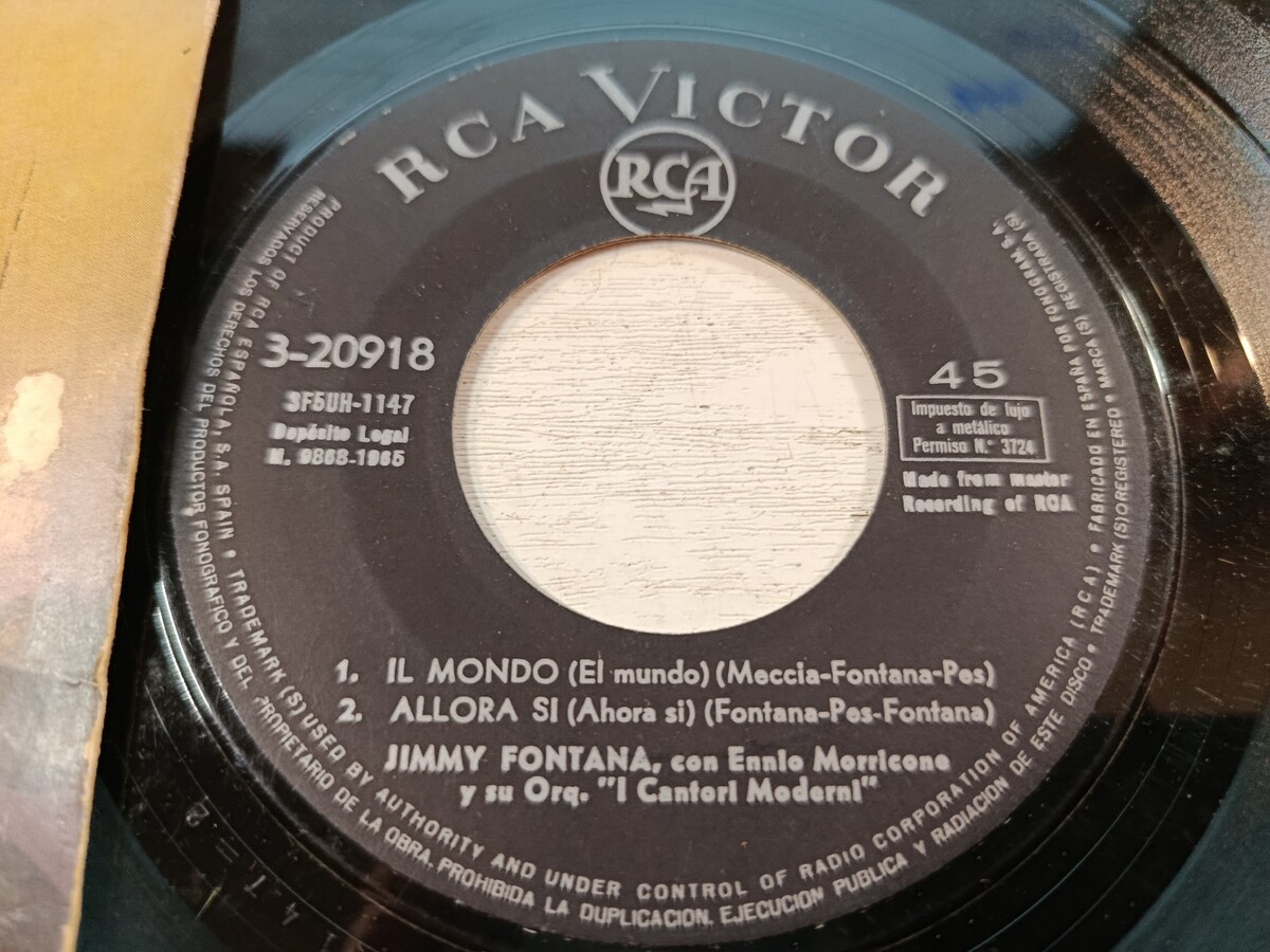 Jimmy Fontana, Il Mondo, 1965, single vinilo, 7 pulgadas, RCA Victor, Ennio Morricone, música italiana, pop vintage, vinilo antiguo, coleccionismo musical, rareza española, disco 45 rpm, años 60, edicion España, rare record