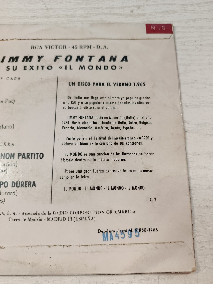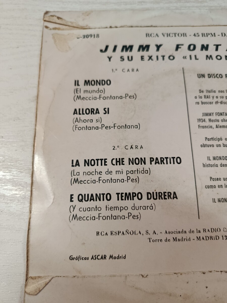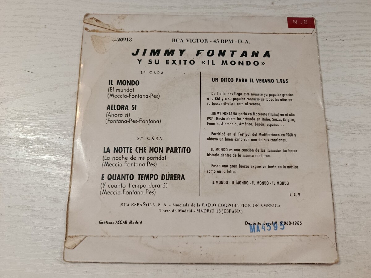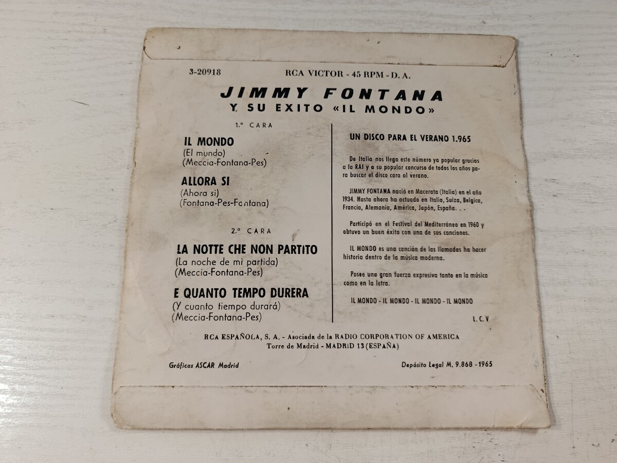 Jimmy Fontana, Il Mondo, 1965, single vinilo, 7 pulgadas, RCA Victor, Ennio Morricone, música italiana, pop vintage, vinilo antiguo, coleccionismo musical, rareza española, disco 45 rpm, años 60, edicion España, rare record